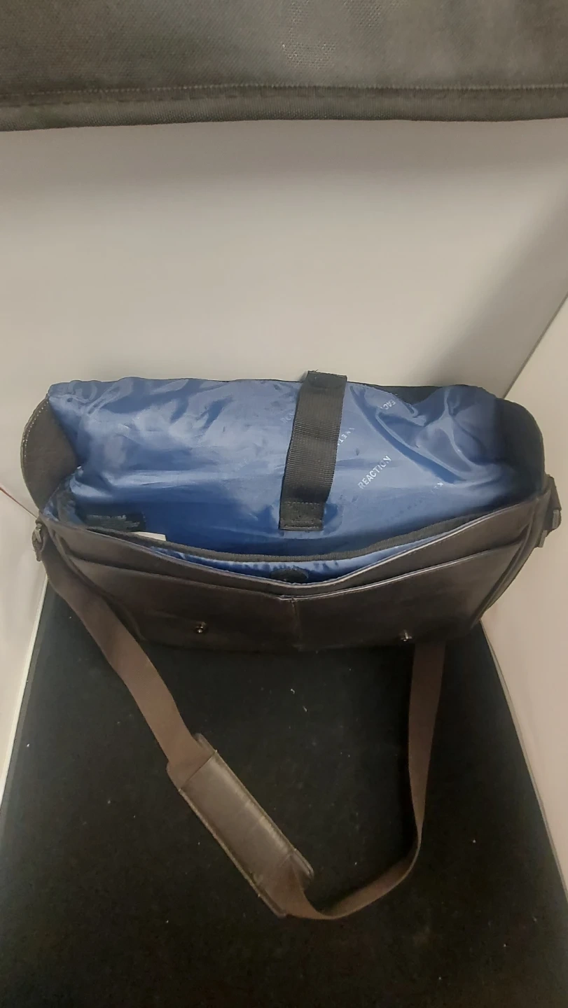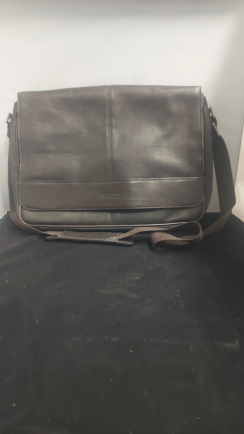 Selling a Kenneth Cole Reaction messenger bag in brown leather. It's in great condition and perfect for work or school. The bag features a spacious interior with multiple compartments to keep your belongings organized.