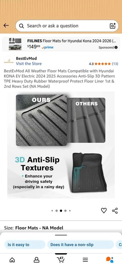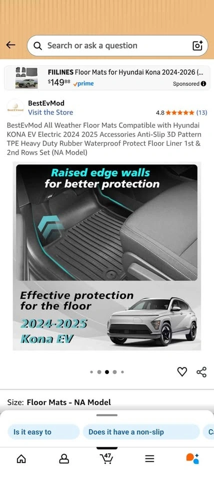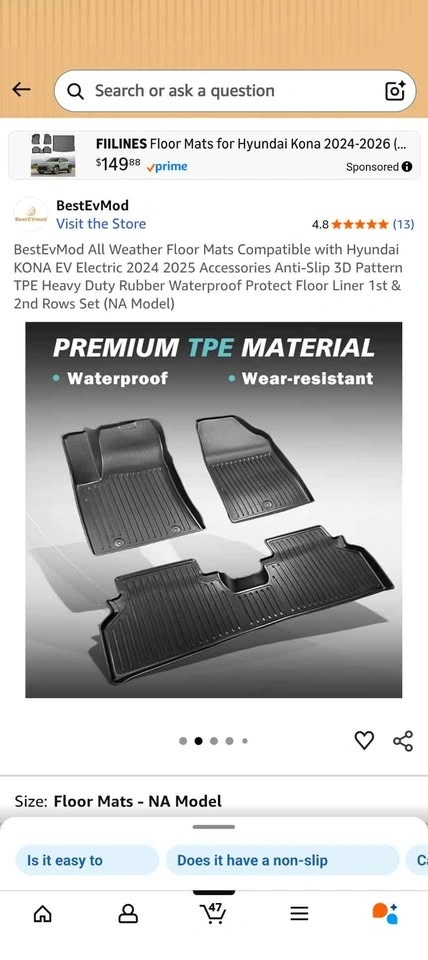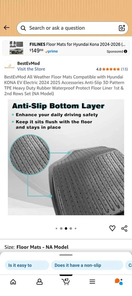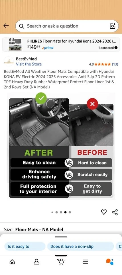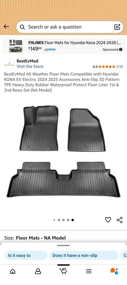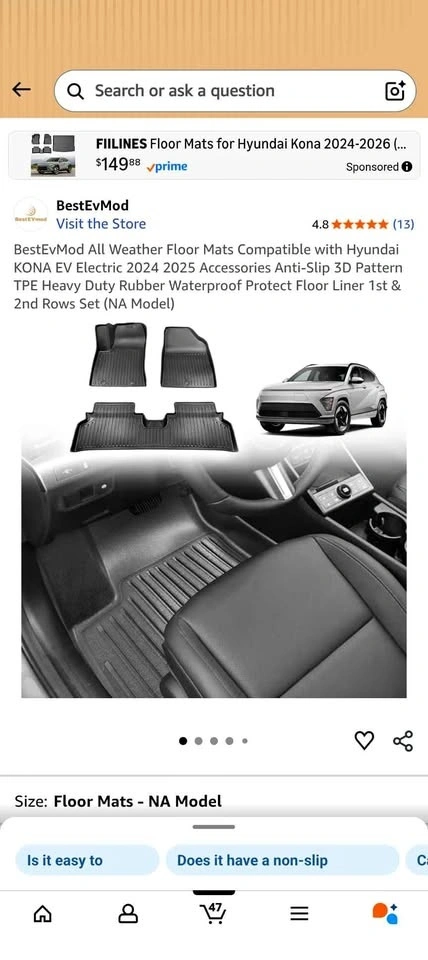 All Weather Floor Mats Hyundai KONA EV Electric 2024 2025