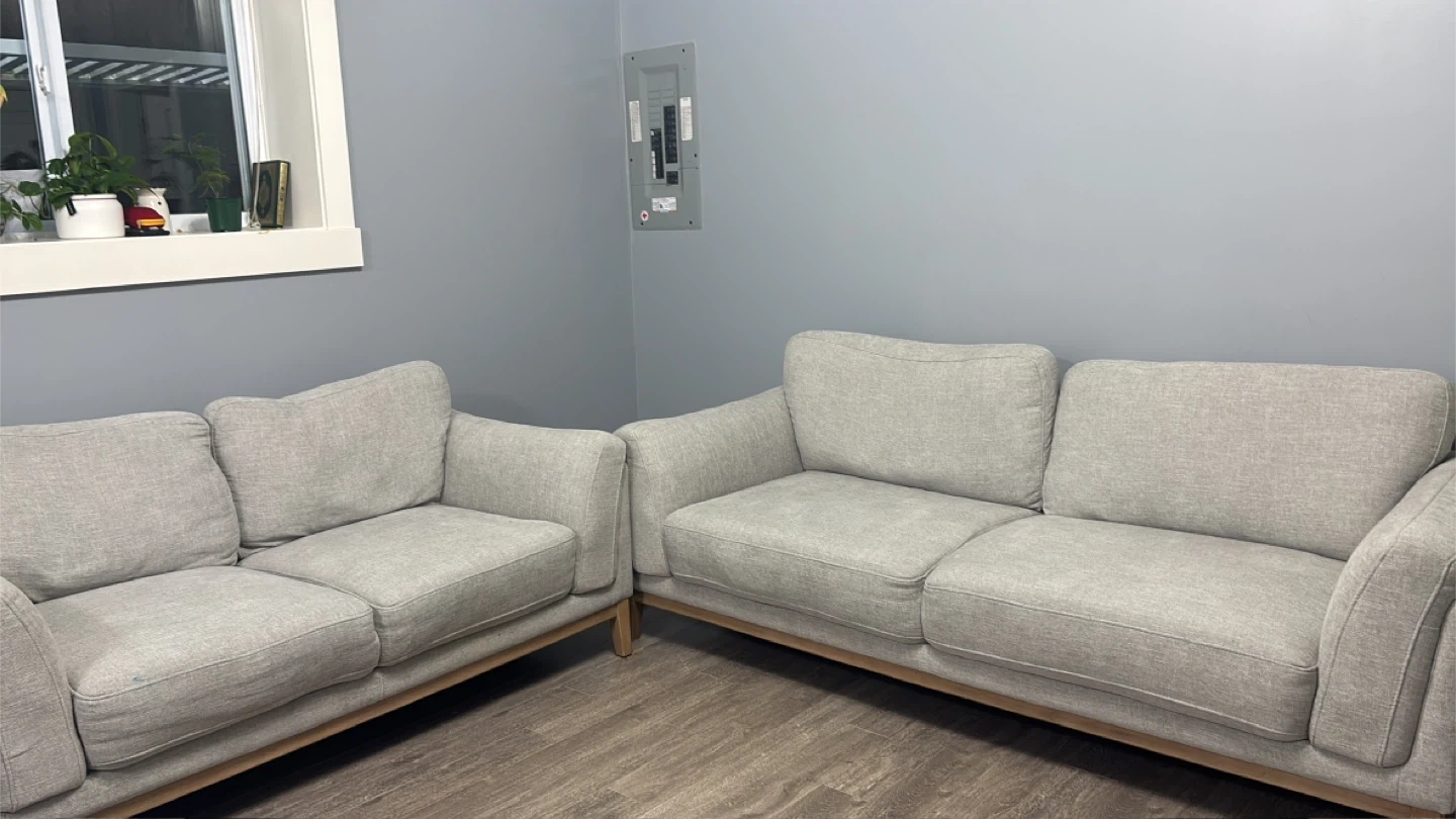 Selling a comfy sofa and loveseat set in a neutral grey colour! Perfect for a living room or family room. The set is in good condition and ready for a new home