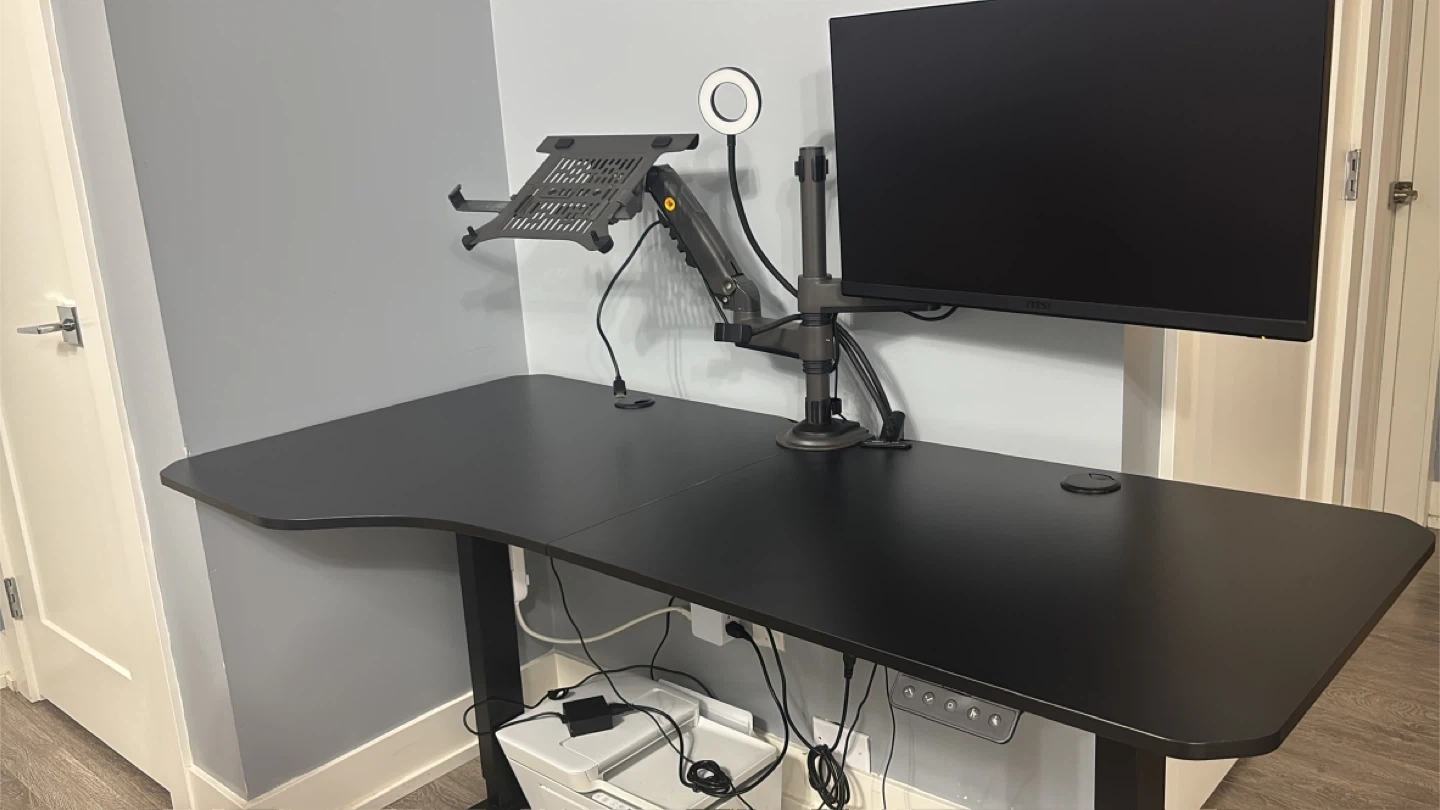Selling a black standing desk. It's in great shape and ready for a new workspace! Perfect for anyone looking to upgrade their home office setup