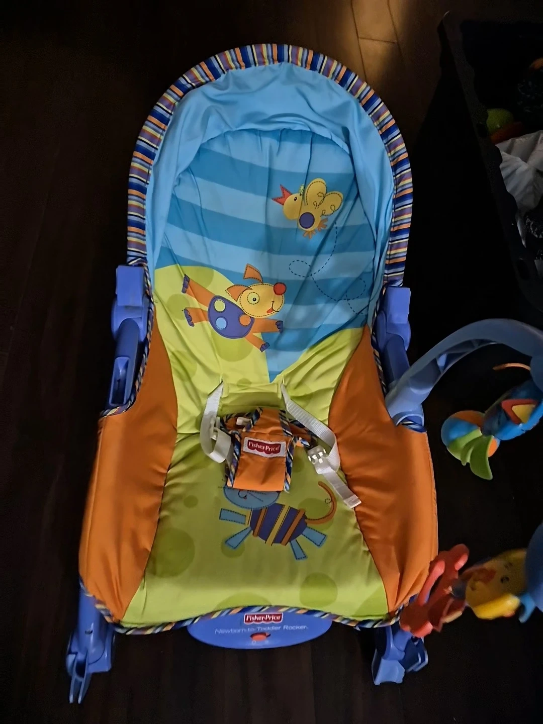 Selling a Fisher-Price Newborn to Toddler Rocker! It's in great shape and ready for a new little one. The rocker is designed to grow with your child, from newborn to toddler. It features a calming vibration to soothe babies and a reclining seat for comfortable feeding or napping. The toy bar with colourful toys encourages reaching and grasping, helping to develop motor skills. It's a great way to keep your little one entertained and comfortable!