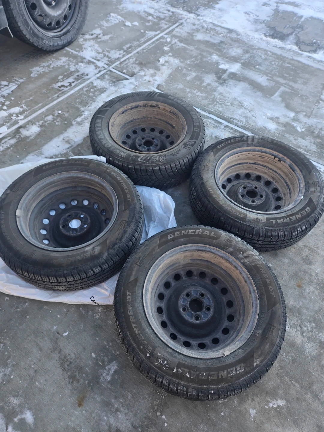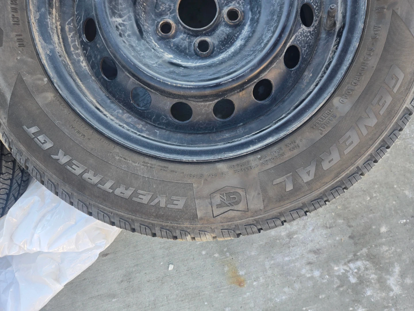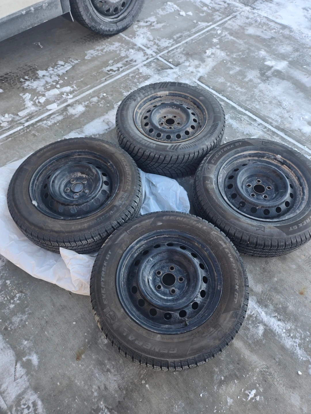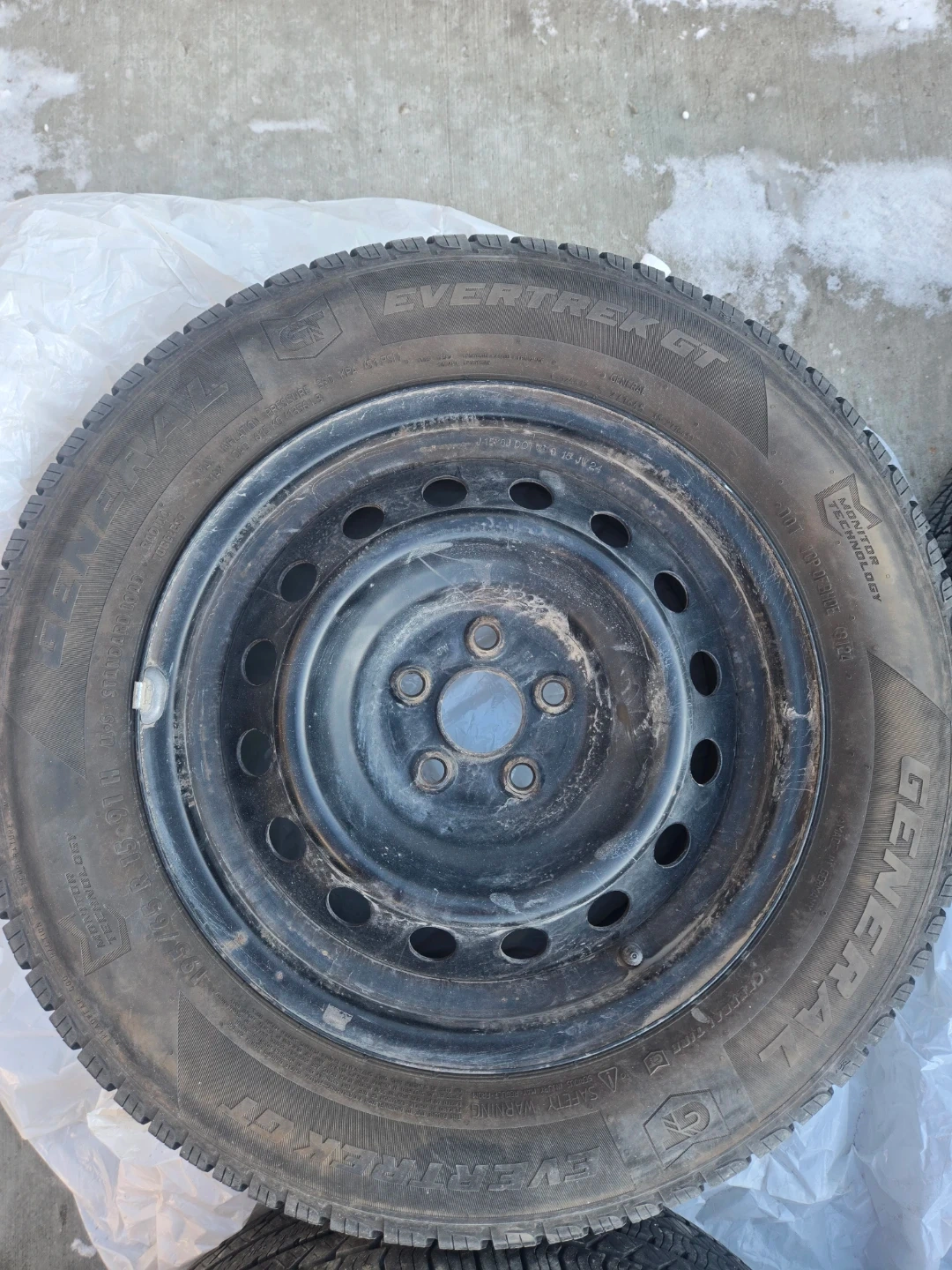 Comes with 3 GT Evertrek all Season Tires. Barely used for 8 months. 195/65 R15. The fourth tire is a flat so it will need to be replaced.