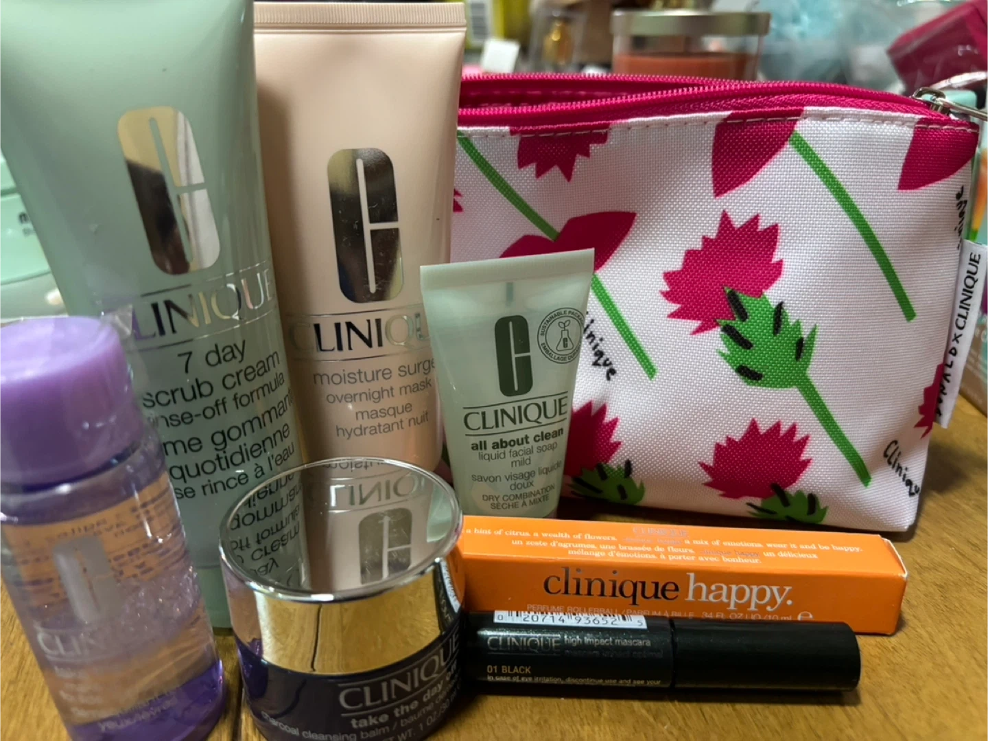 Also comes with a cute Clinique makeup bag!