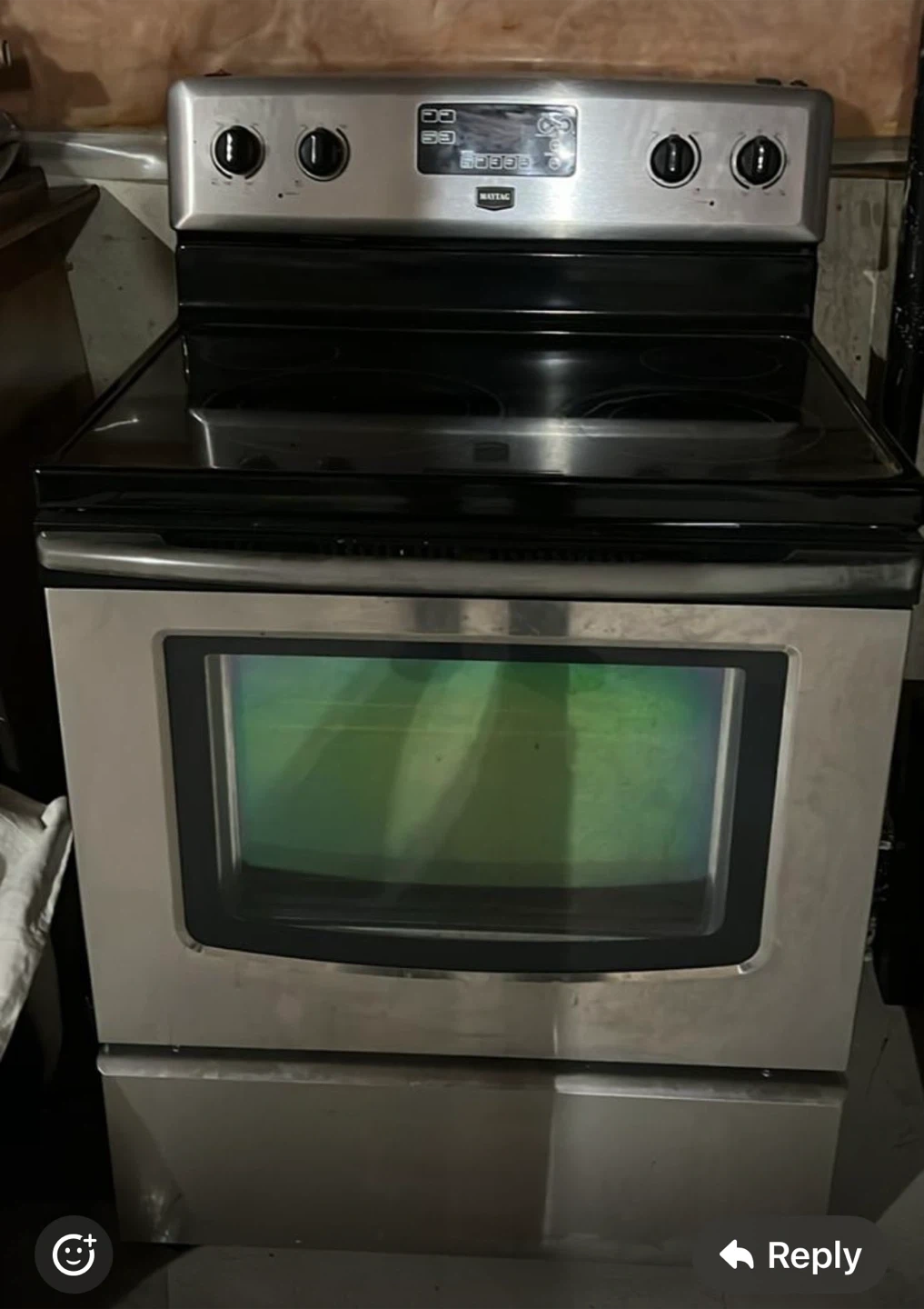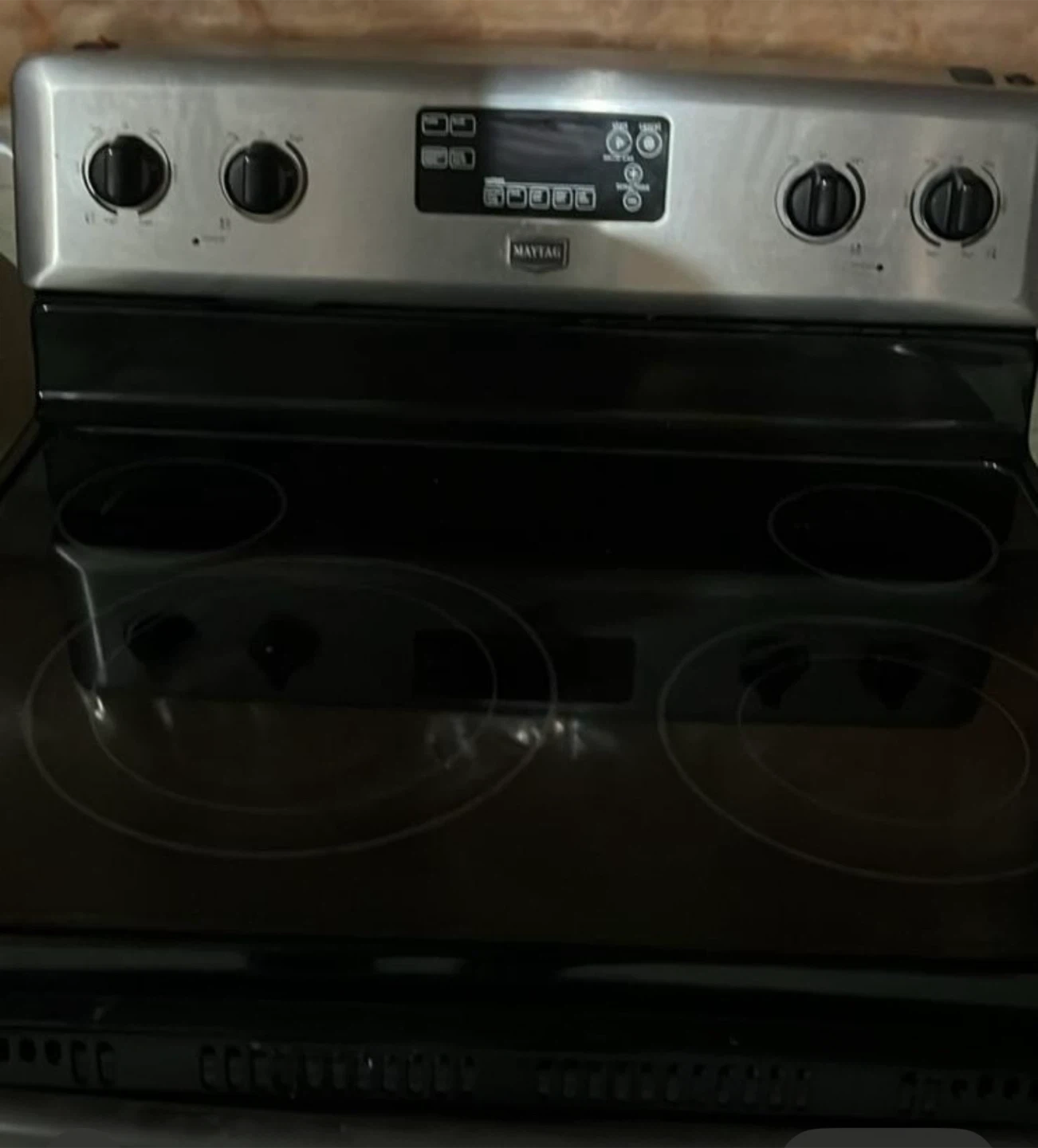 Selling a Maytag electric range with a stainless steel finish! It's in good condition and ready for a new kitchen. The range features a smooth top and easy-to-use controls