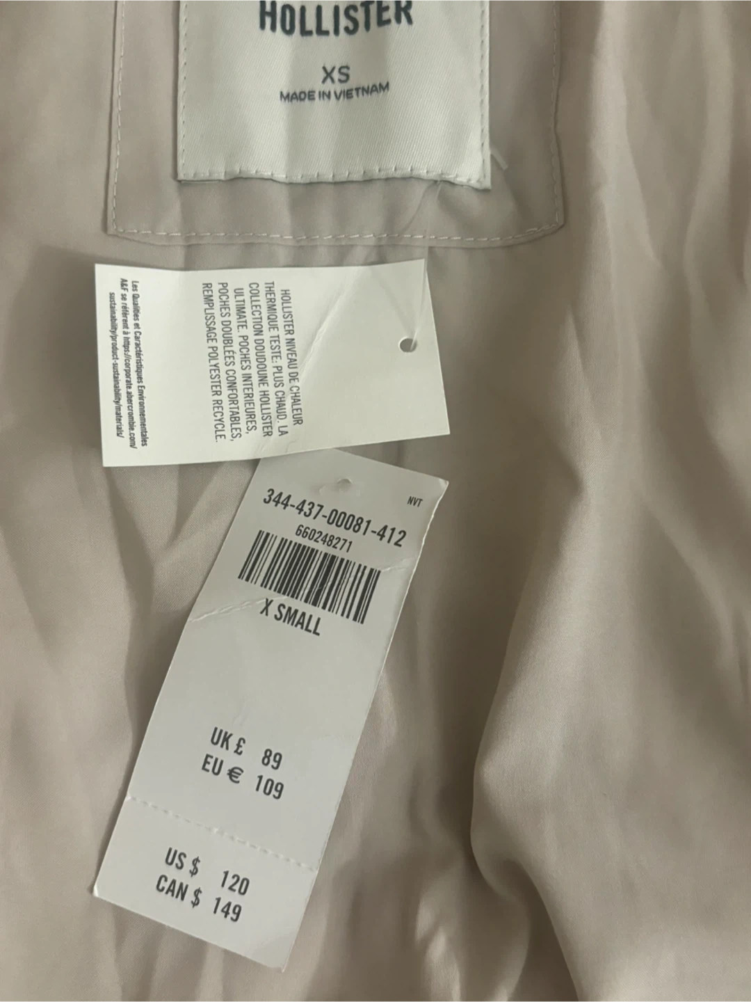 Selling a brand new Hollister cable knit puffer jacket in size XS. It's a beautiful cream color and features a unique cable knit design. The original price was $120