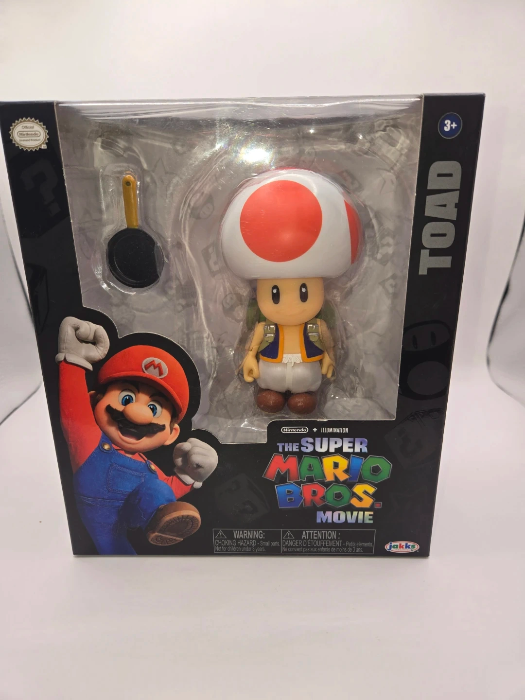 Selling a brand new, in-box Toad figure from The Super Mario Bros Movie! This figure is made by Jakks Pacific and is suitable for ages 3+ Includes the figure and a little frying pan accessory