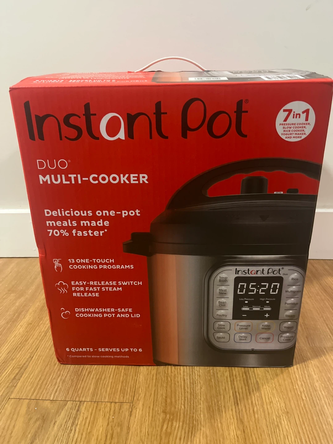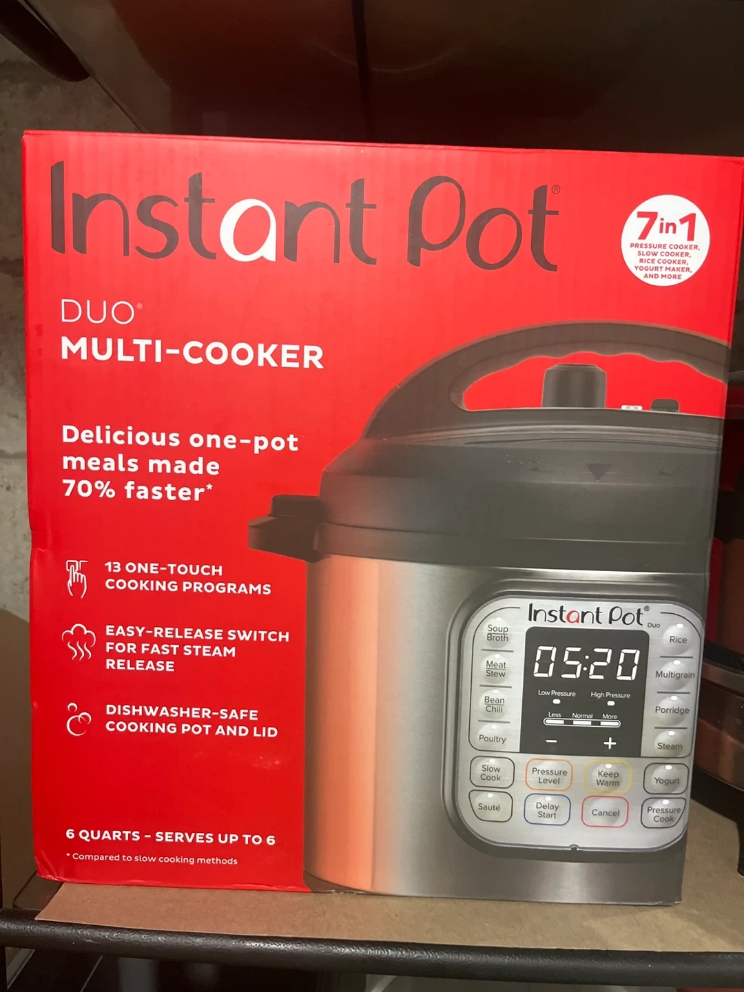 Selling a brand new Instant Pot Duo multi-cooker. It's a 7-in-1 pressure cooker that makes delicious one-pot meals 70% faster.