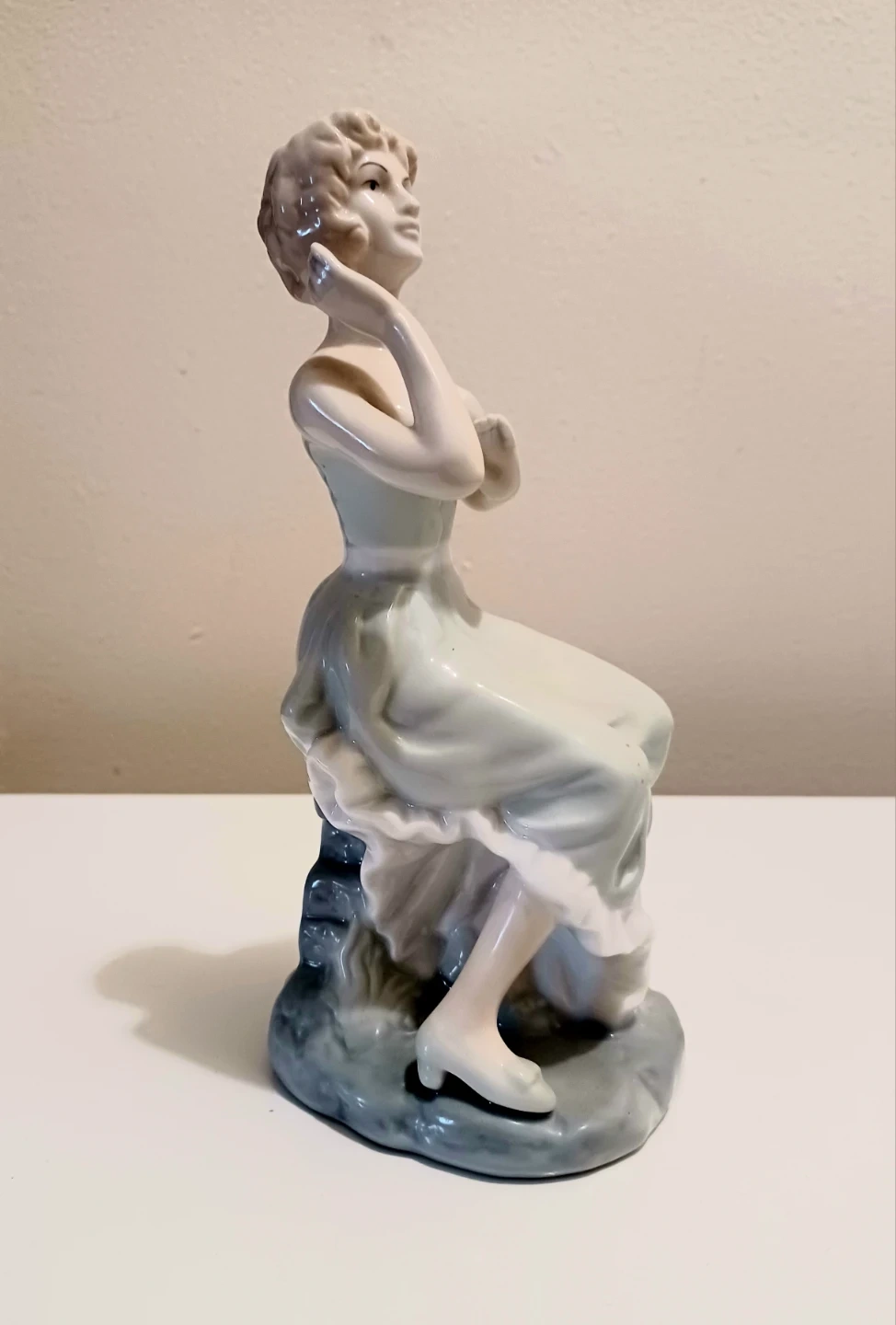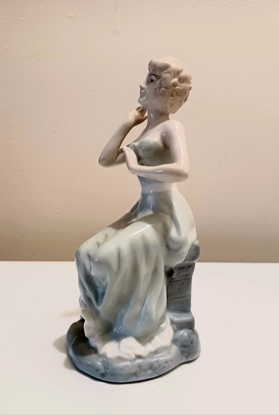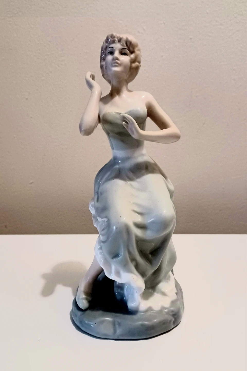 Vintage, Rare,Hand-crafted, Glazed Raffles Porcelain Statue featuring a graceful figure in