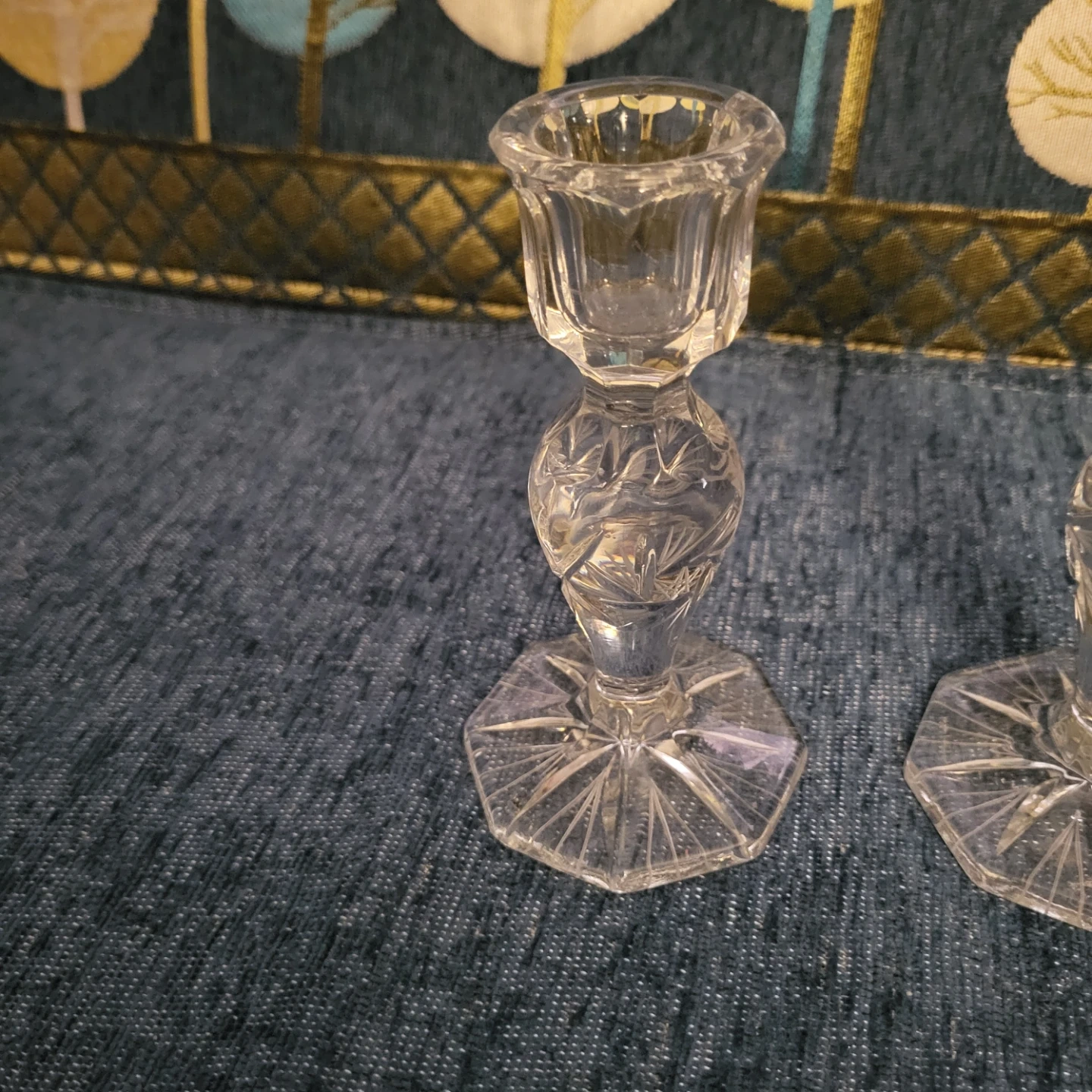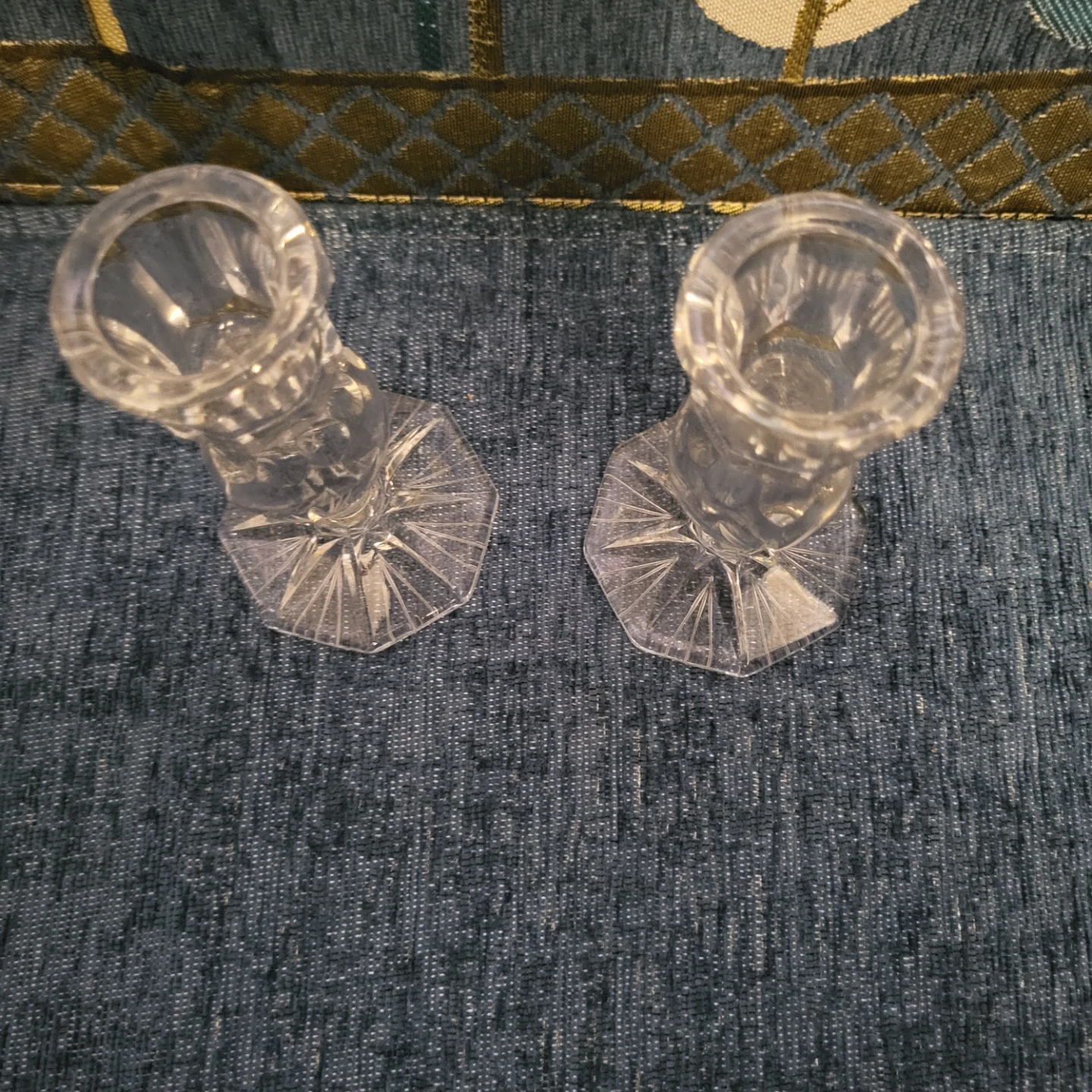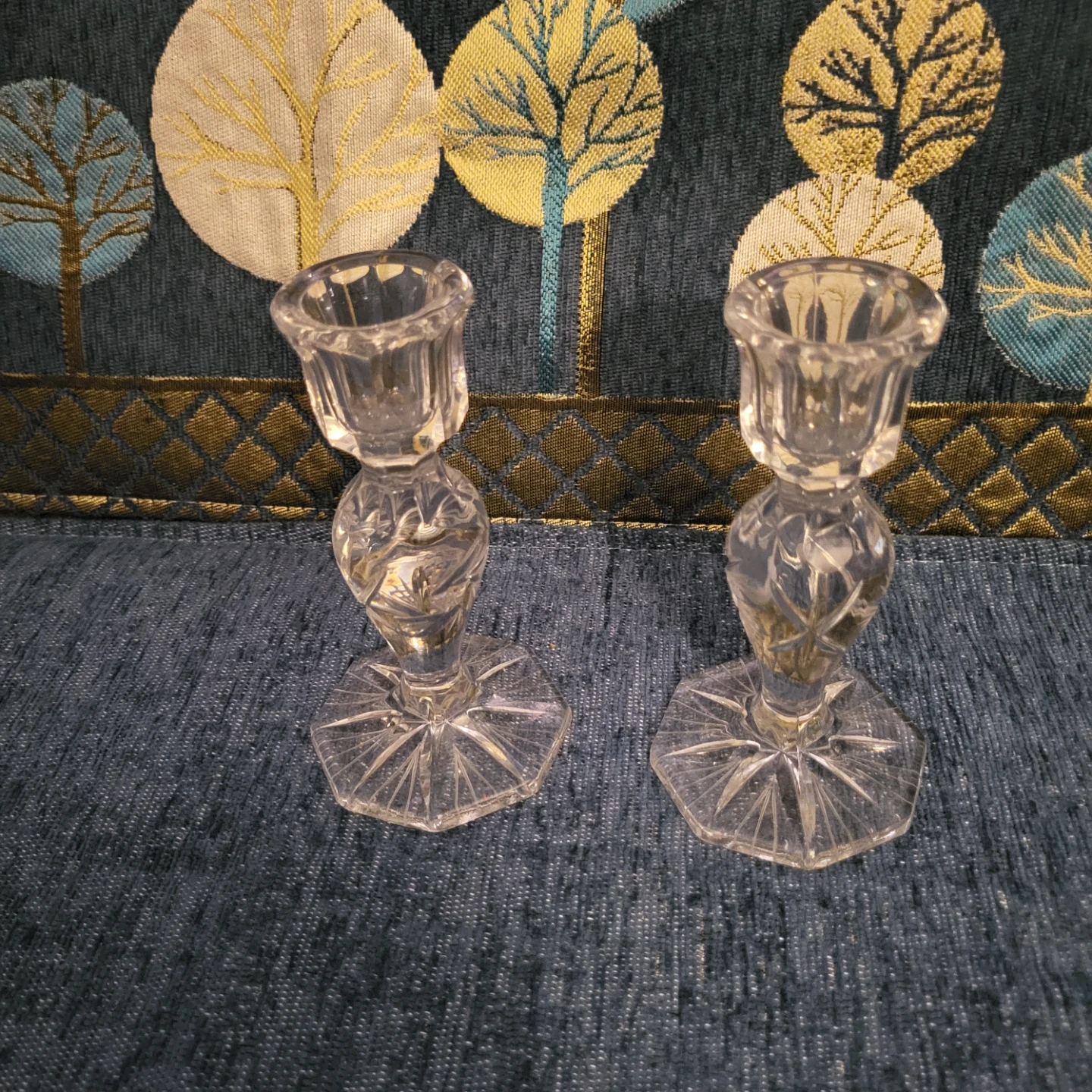 Selling a set of two clear glass candlestick holders. They have a lovely design and would look great on any table or mantle! They're in great condition and ready for a new home.
