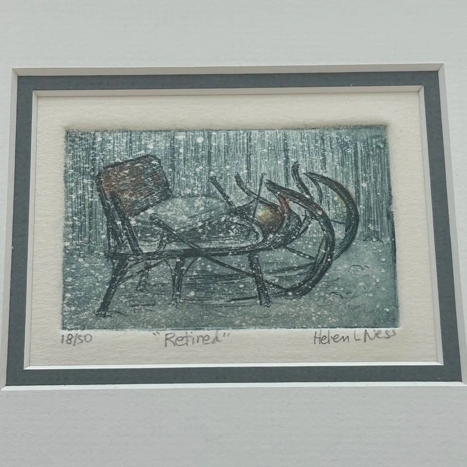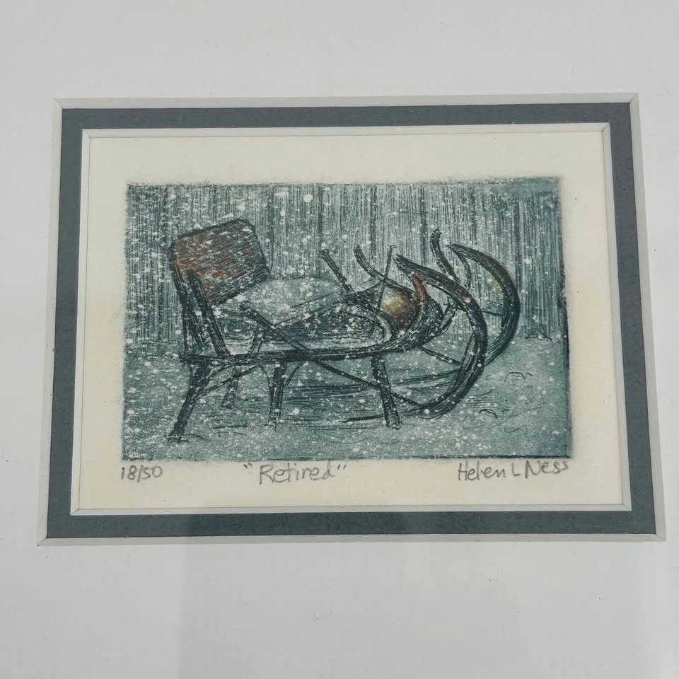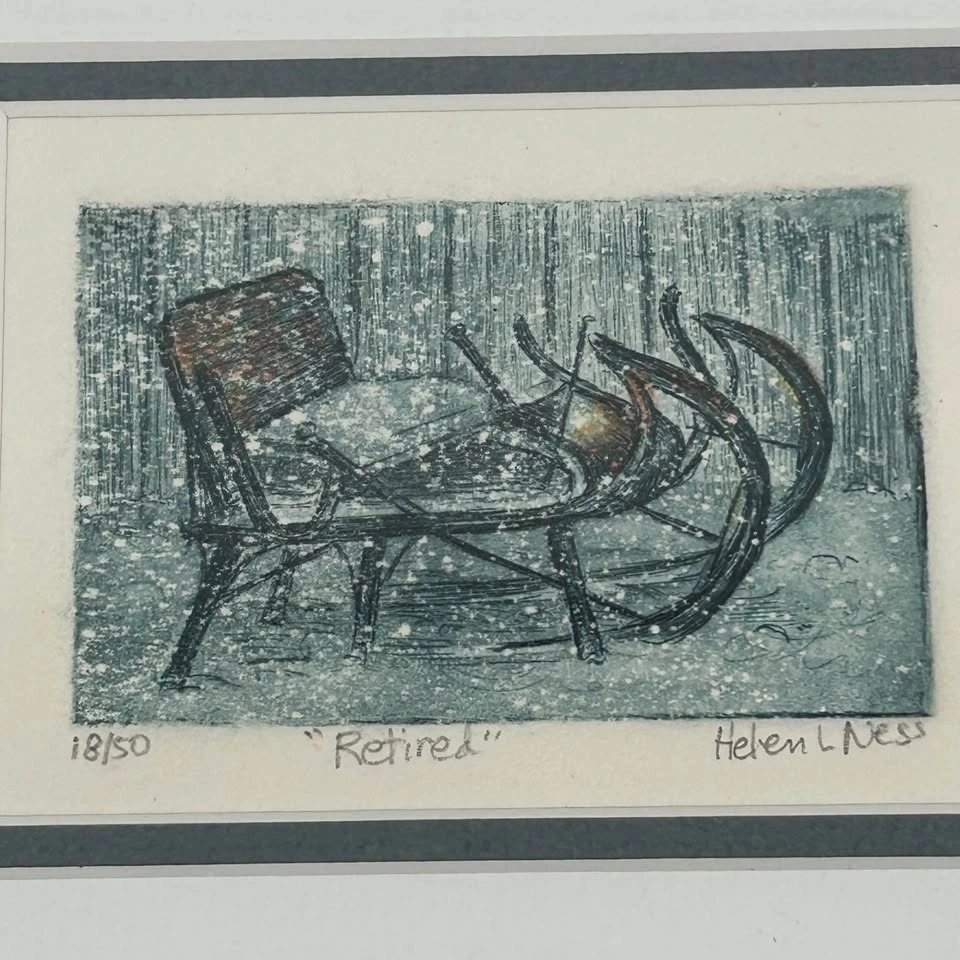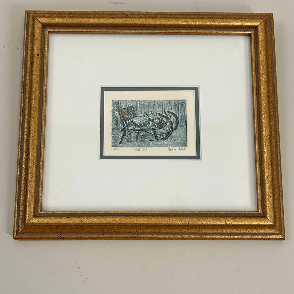 Helen L. Ness "Retired" Hand-Colored Etching
