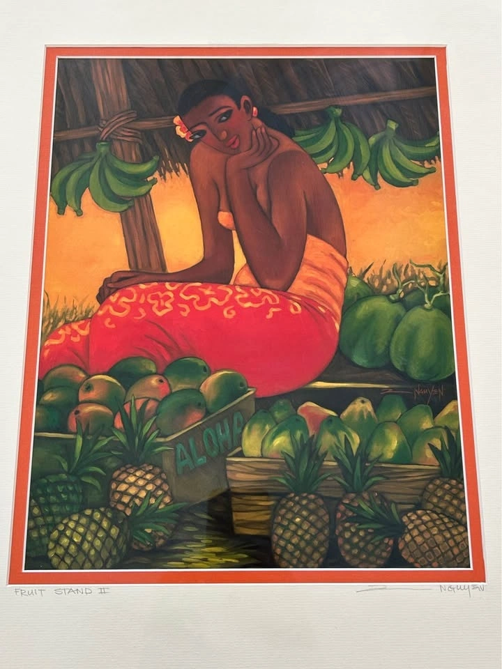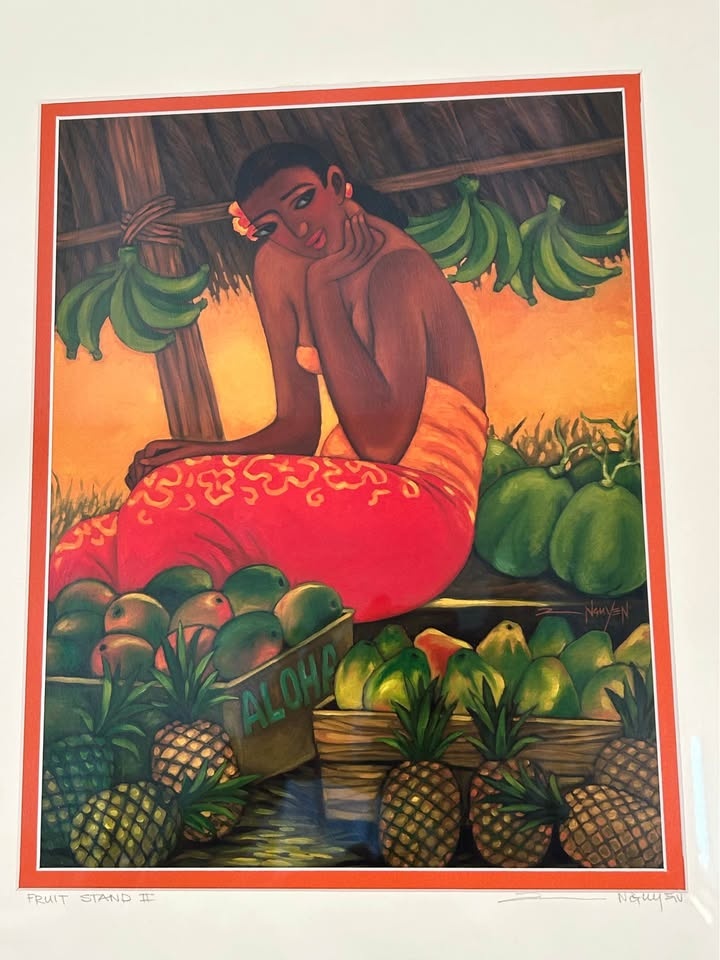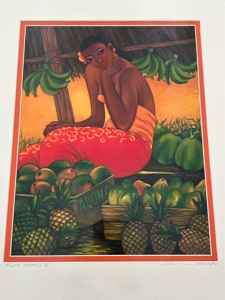 Add a touch of tropical warmth to your home with this beautiful piece by celebrated artist Tim Nguyen. Known for his vibrant colors and inspired Hawaiian landscapes, Nguyen’s work is collected worldwide and sought after for its emotional energy and cultural beauty.