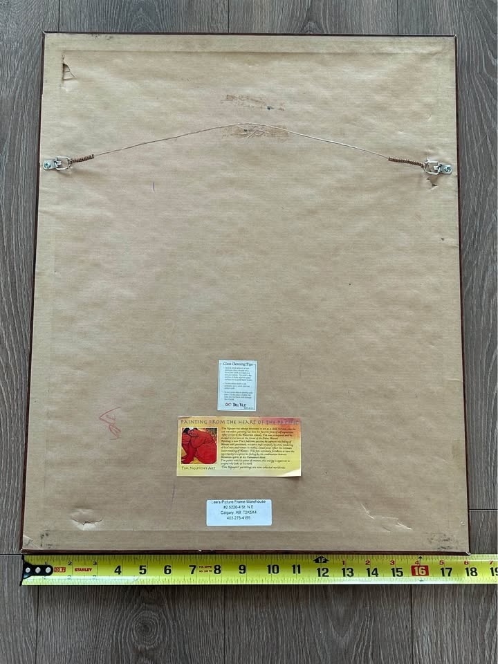 • Framing: Professional custom framing by Frame For Less in Calgary.