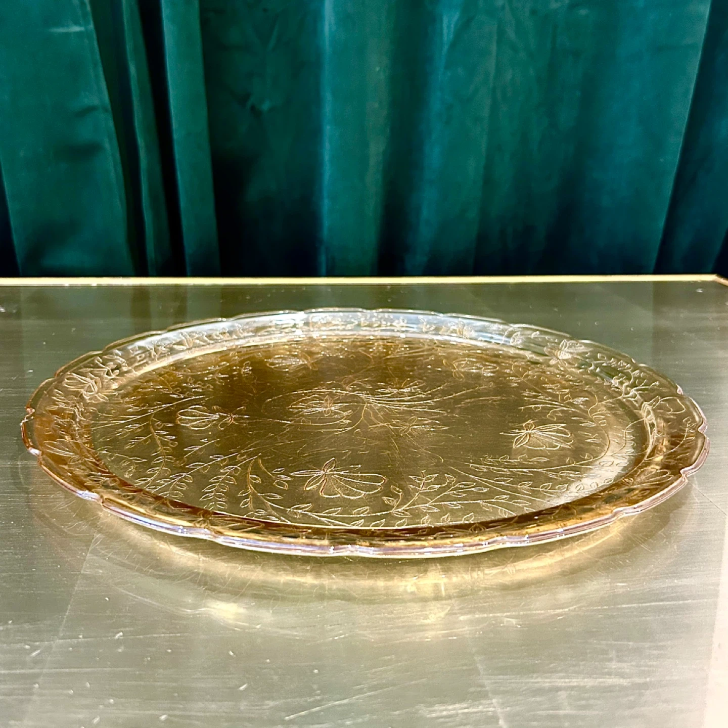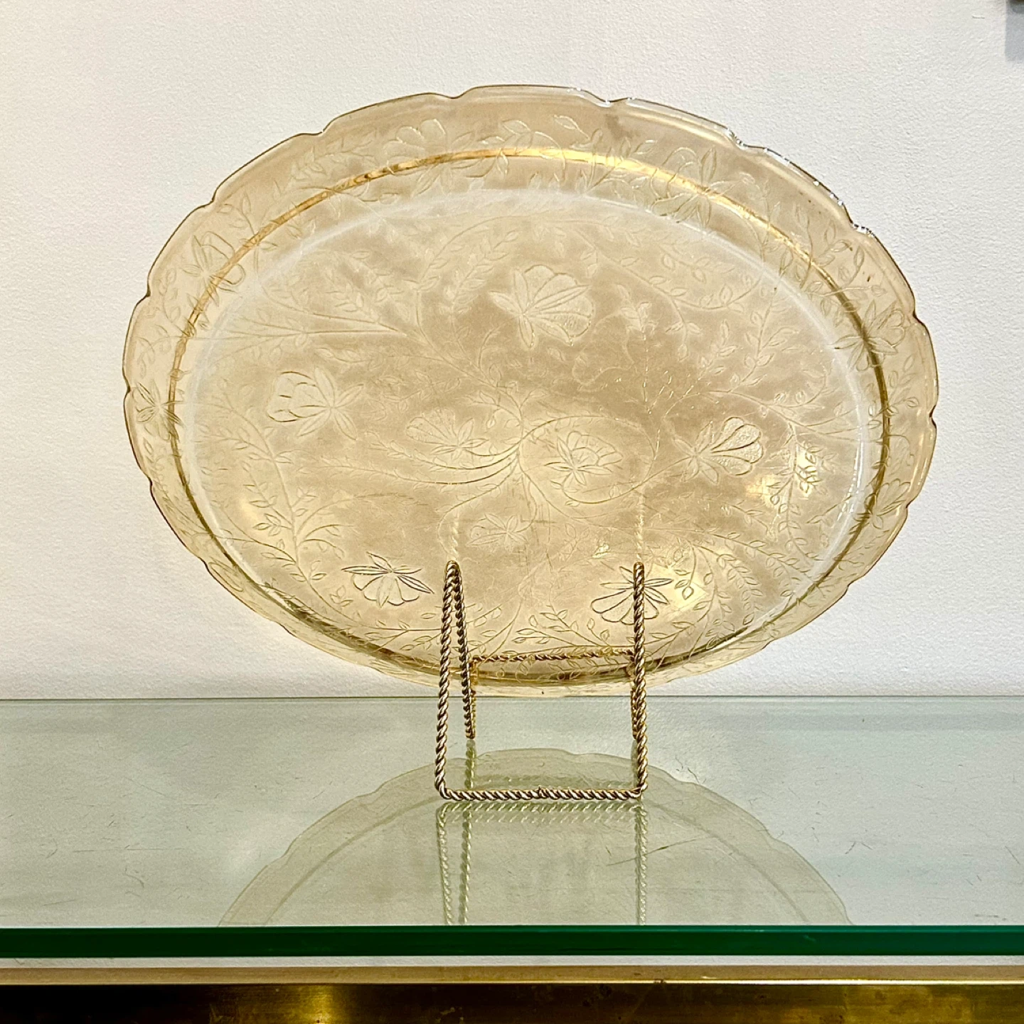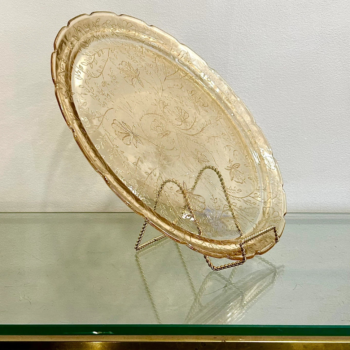 • Etched amber trays from this period were commonly used for tea service, pastries, or formal table presentation, and are now highly sought after as display pieces.