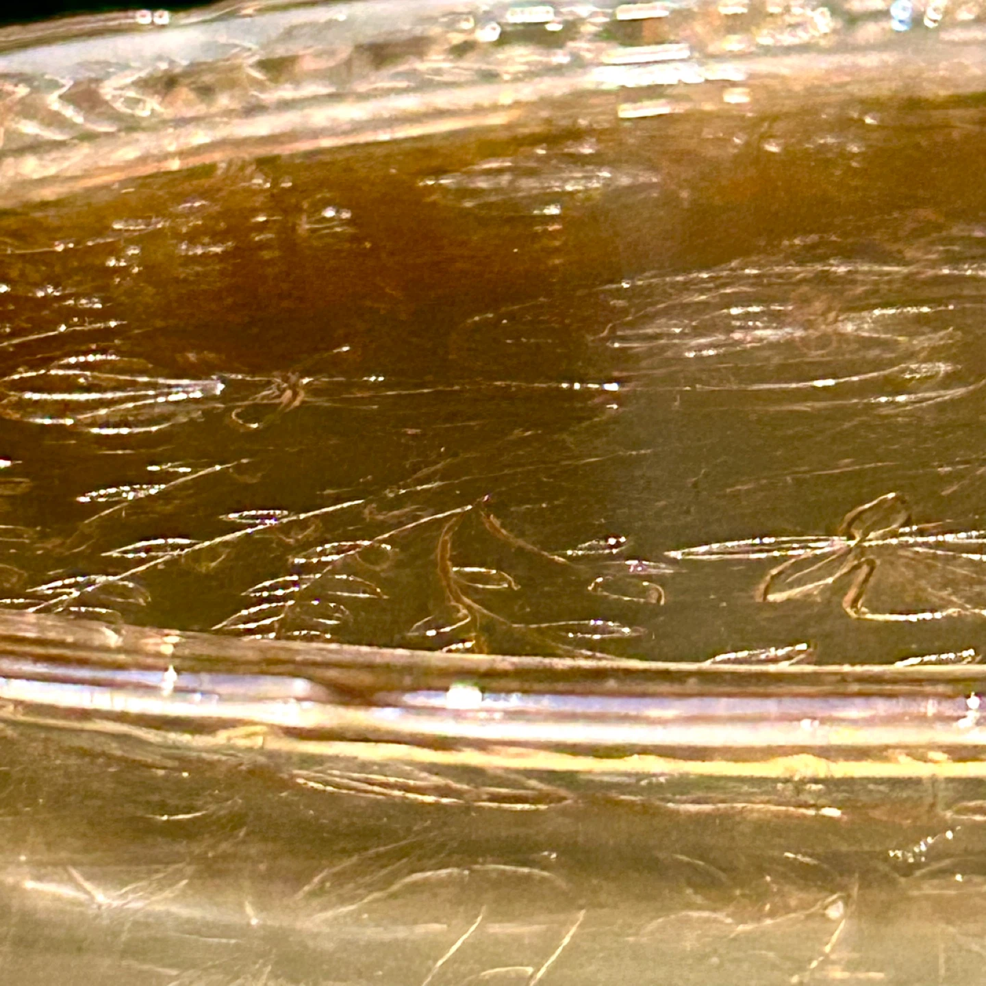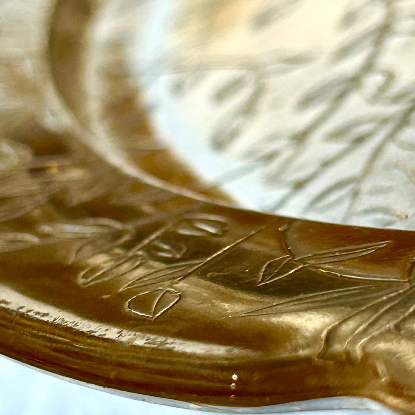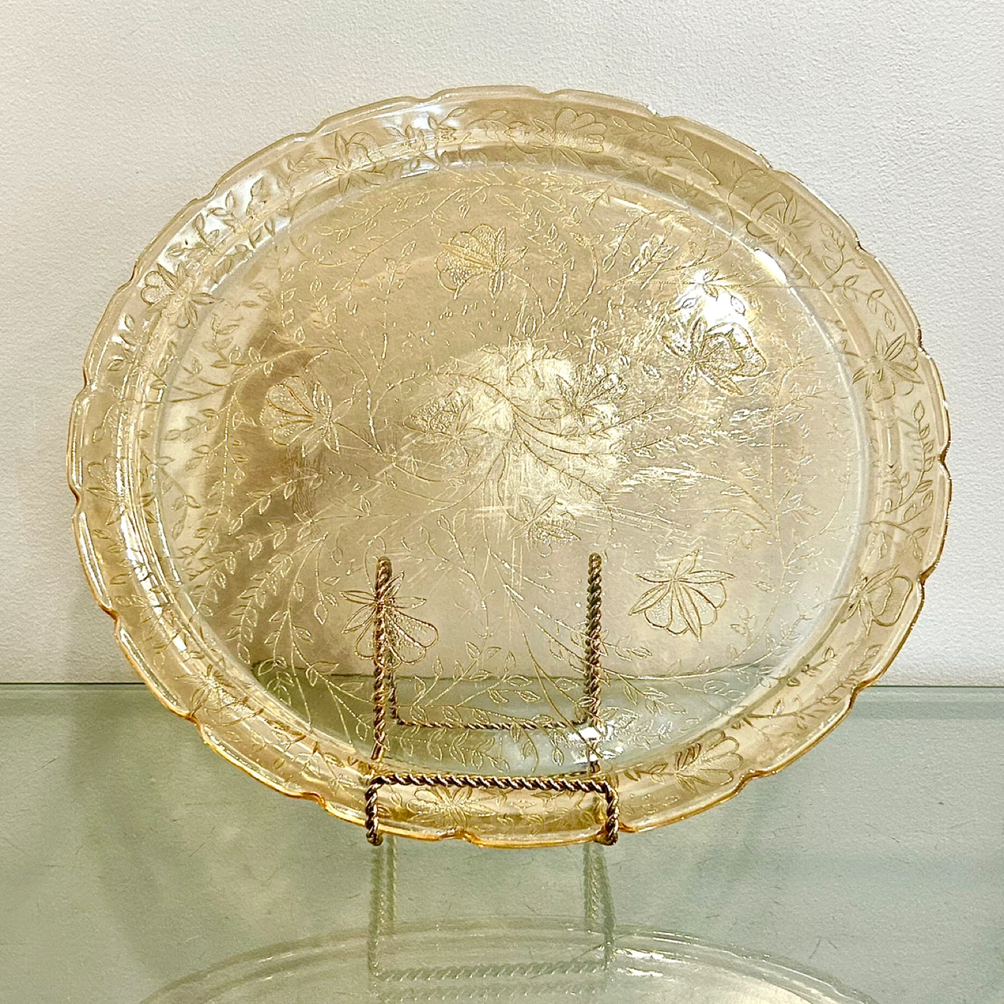 • Etched amber trays from this period were commonly used for tea service, pastries, or formal table presentation, and are now highly sought after as display pieces.