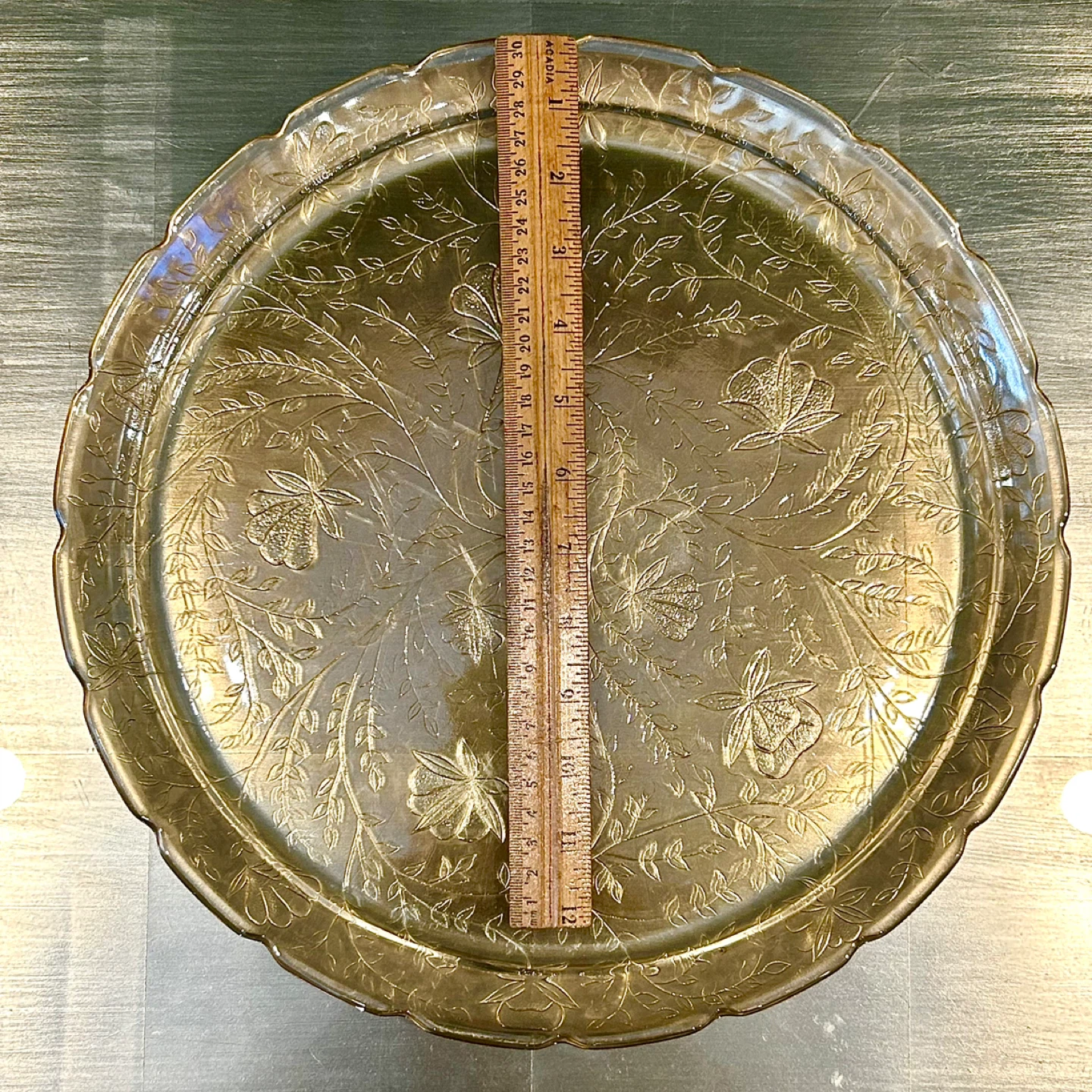 Antique Etched Amber Glass Serving Tray, c.1920–30s