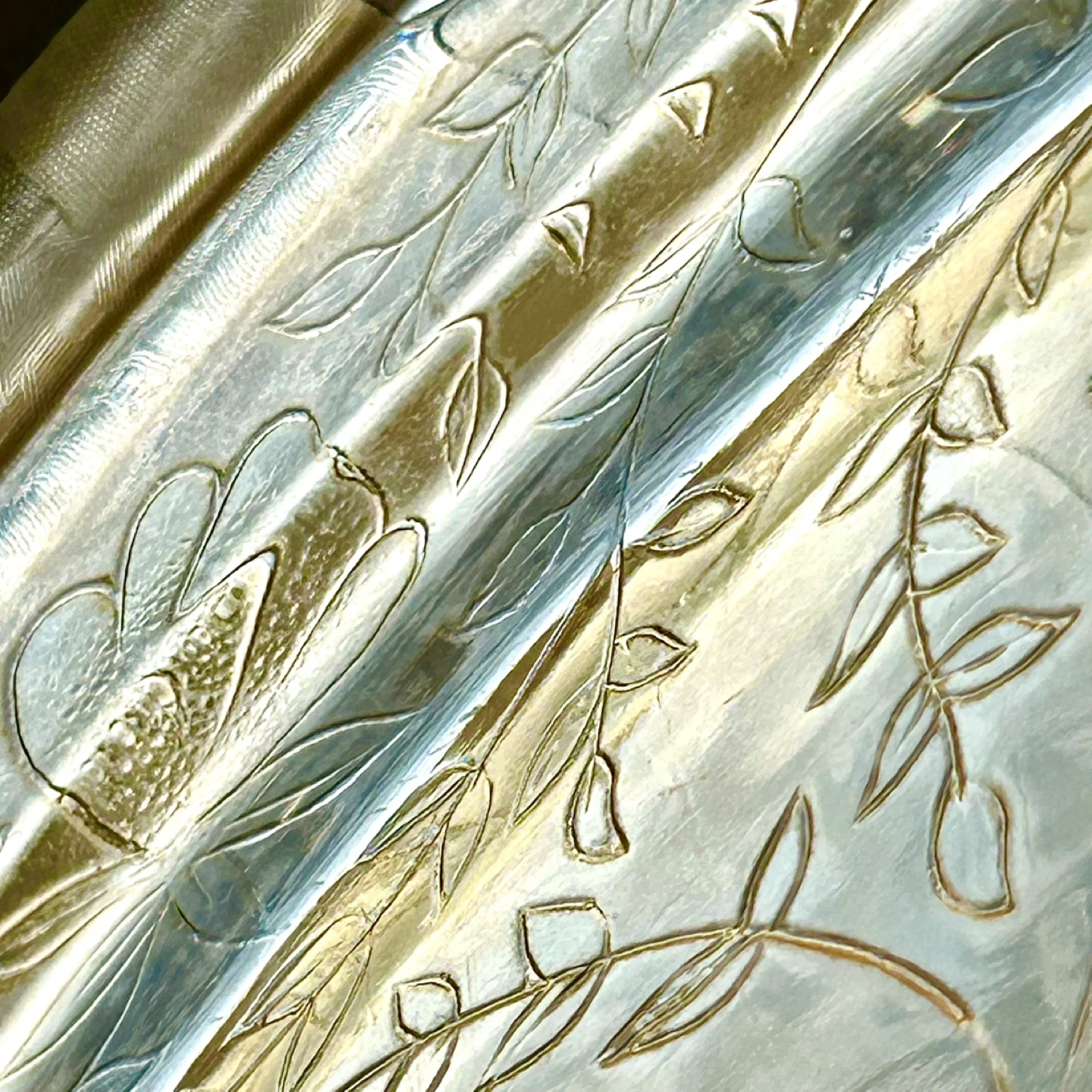 • Decoration: All-over floral and vine etching with scalloped rim