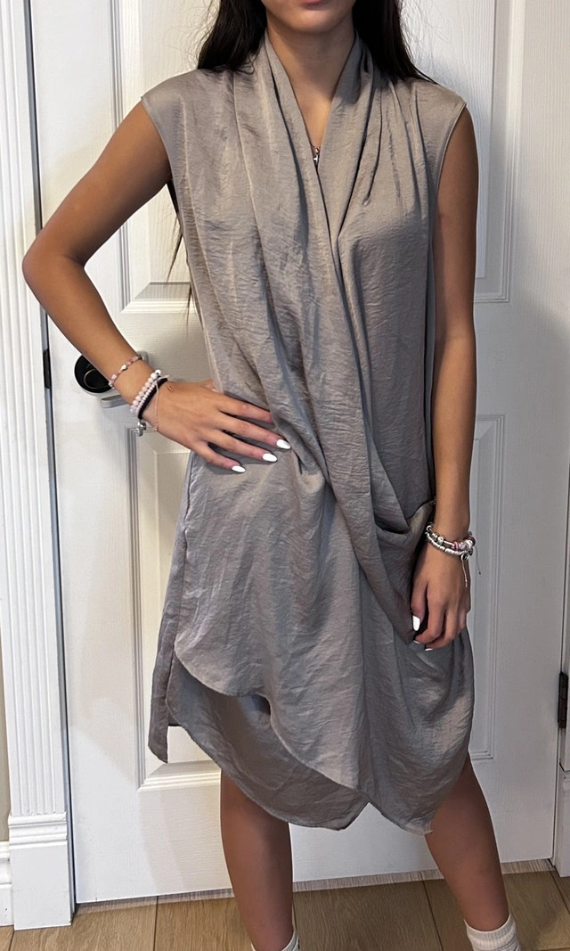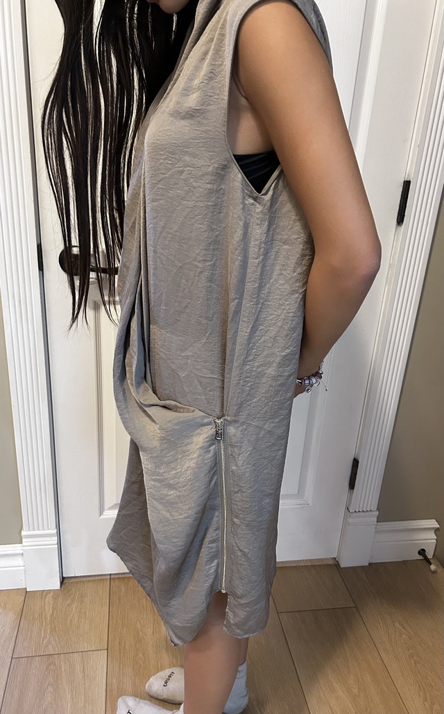 This Rudsak dress is a stylish and unique piece, perfect for various occasions, featuring a cowl neck and a distinctive side zipper detail. In excellent condition. Add a touch of edgy elegance to your wardrobe. Additional details: - Brand: Rudsak - Size: M/M (Medium) - Colour: Grey - Design: Cowl neck with side zipper detail It's a chance to own a designer piece at a fraction of the retail price. I'm looking forward to connecting with you! Pick up in Springbank Hill or Royal Oak