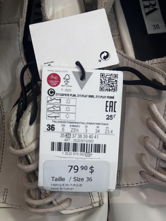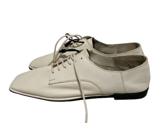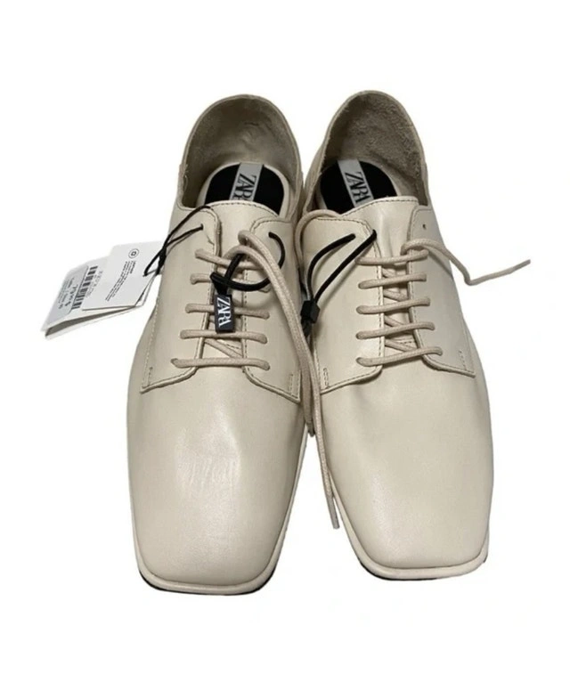 Step out in style with these brand new Zara Flat all leather shoes, size 6. These shoes feature a sleek, modern design with a comfortable flat sole, perfect for all-day wear. The creamy, neutral tone makes them versatile enough to pair with any outfit, from casual to chic.
