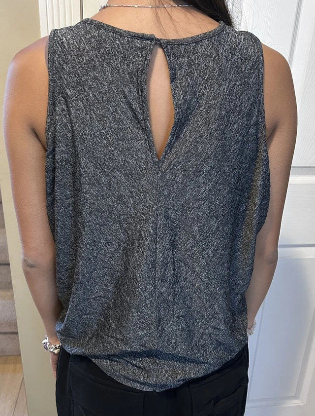 This is a gently worn Babaton tank top in size XXS however it fits like a S-M. It features a stylish design with a unique back detail. The top is in good condition, perfect for casual wear or dressing up. - Brand: Babaton - Size: XXS - Colour: Grey Looking to add a touch of elegance to your wardrobe? This classic tank top is a must-have. Don't miss out! pick up in Springbank Hill or Royal Oak P.S. If the ad is up, it's still available!