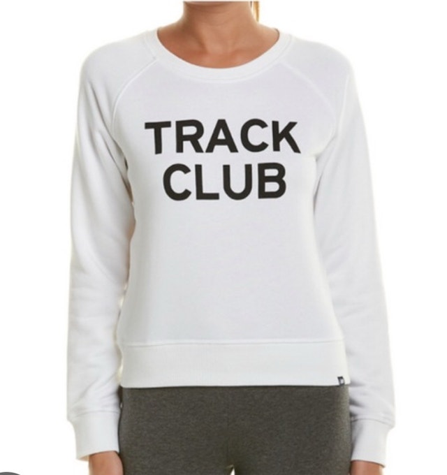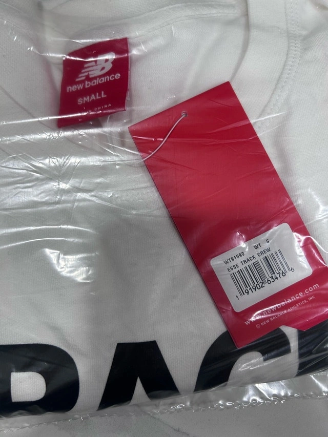 I'm selling a brand new with tags New Balance Essentials Track Crew sweatshirt in size small. This stylish and comfortable sweatshirt features a classic design with 'TRACK CLUB' printed across the front. Perfect for workouts, casual wear, or layering.