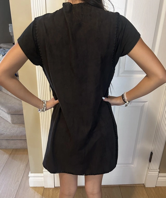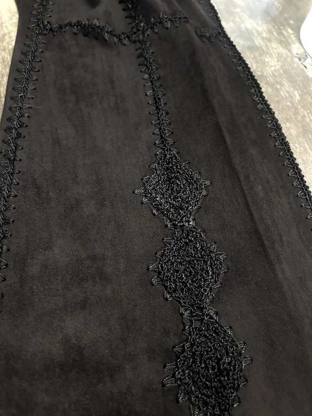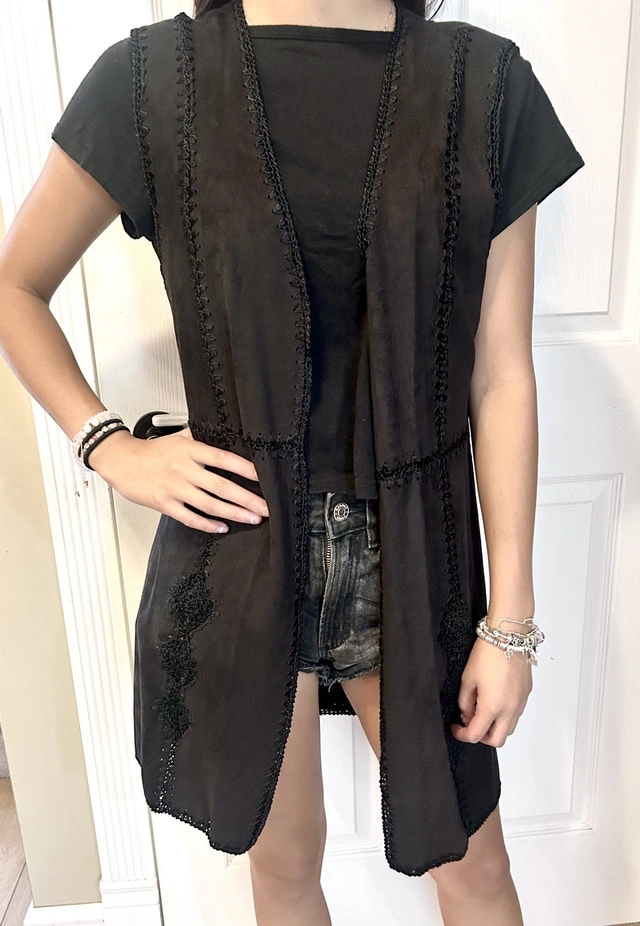 This is a Carre Noir Embroidered Vest in size small. It's a stylish black vest with intricate embroidery, perfect for adding a unique touch to any outfit. The vest is in excellent condition. Pick up in Springbank Hill or Royal Oak.