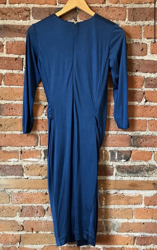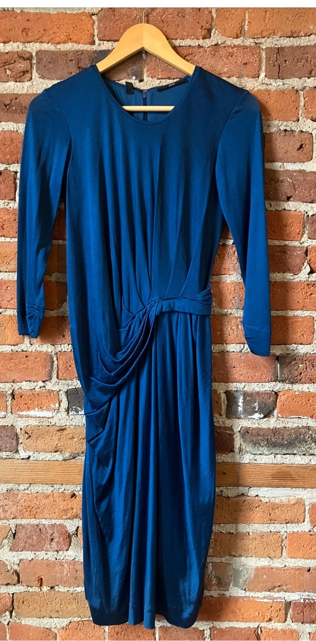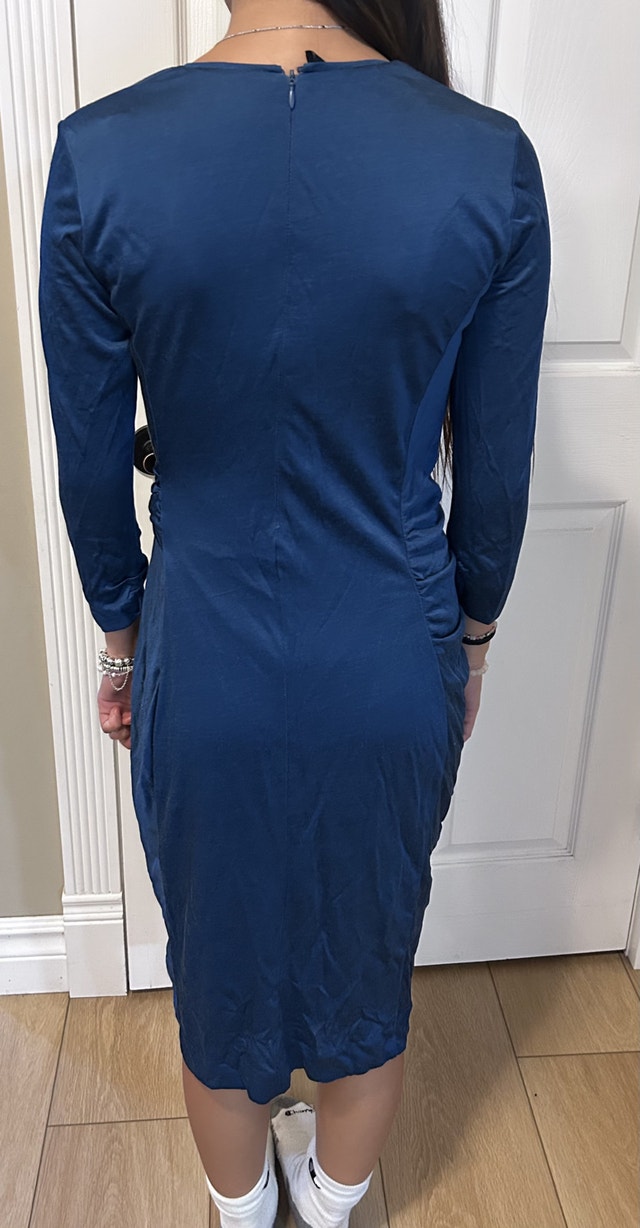 This is a Hugo Boss pinned and draped dress in size XS. This elegant blue dress features a unique pinned and draped design, perfect for adding a touch of sophistication to your wardrobe. The dress is in excellent used condition, ready for its next stylish adventure. Key Features: * Brand: Hugo Boss * Size: XS * Design: Pinned and draped slinky fit. * Colour: Blue * Sleeve Length: 3/4 If you are reading this, the dress is available! Don't miss out on this fabulous find! Pick up in Springbank Hill, or can meet within reason.