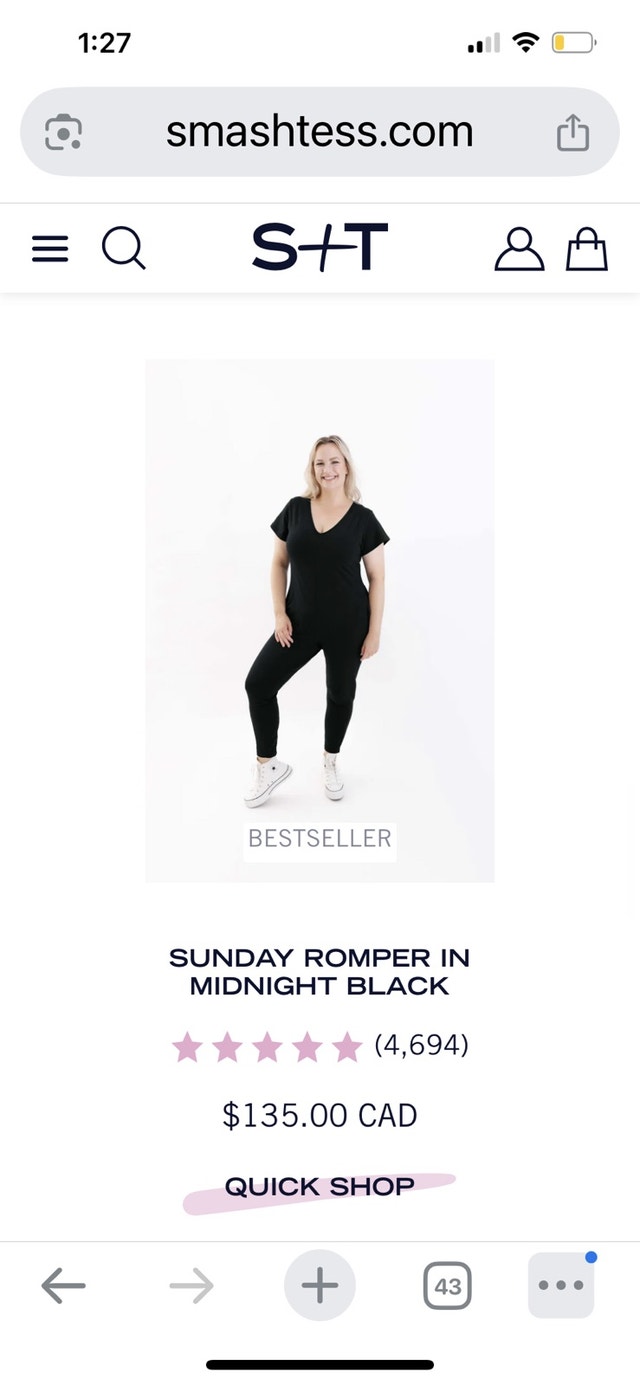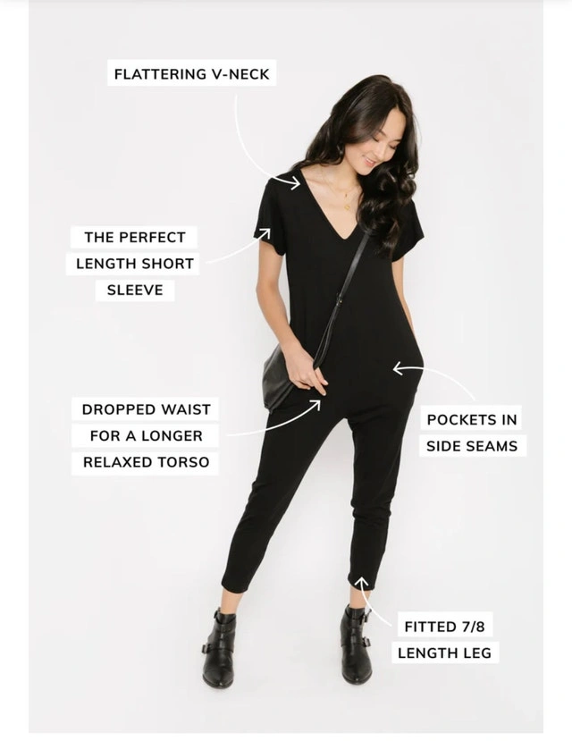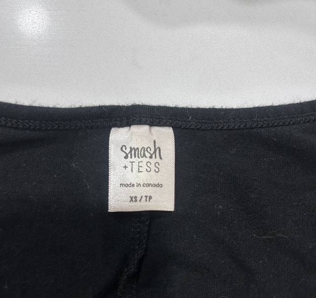 Made in Canada!! This is a Smash + Tess Sunday Romper in size XS. It's a stylish and comfortable one-piece outfit, perfect for casual wear. The romper features a flattering V-neck, short sleeves, a dropped waist for a longer relaxed torso, pockets in the side seams, and a fitted 7/8 length leg. It is in great condition. Additional details: * Size: Extra Small (XS) * Colour: Black * Style: Sunday Romper * Brand: Smash + Tess Based on similar listings, I'm pricing it at $65. If the ad's up, it's still available, so feel free to reach out and add this gem to your wardrobe!