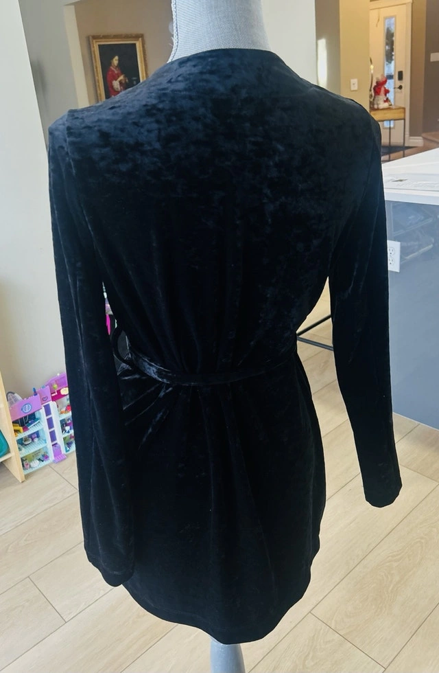 This is a new Forever 21 velvet robe, size small, perfect for adding a touch of luxury to your loungewear collection, Christmas party, a date night or an evening with the ladies. Comes with a waist tie for a flattering fit. Key features: * Material: Soft velvet * Size: Small * Colour: Black * Closure: Waist tie brand new text still attached. Pick up in Springbank Hill