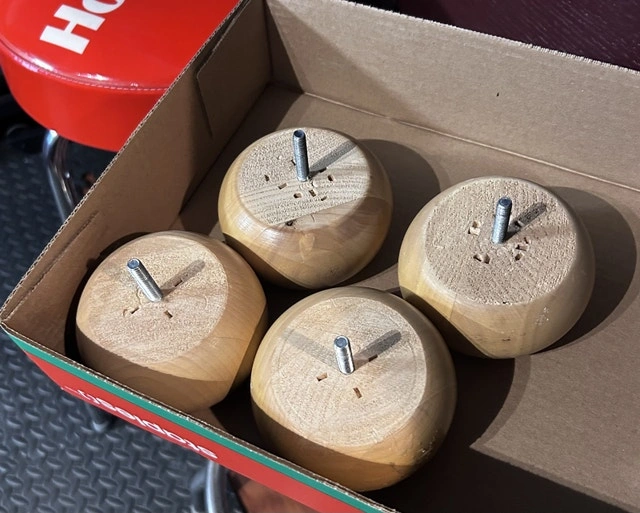 Upgrade your furniture with these vintage round, wooden furniture legs. These are in great condition and ready to add a touch of elegance to your sofas, chairs, or other furniture pieces. Perfect for DIY projects or replacements! You can't go wrong with these solid wood legs. Pick up in Springbank Hill
