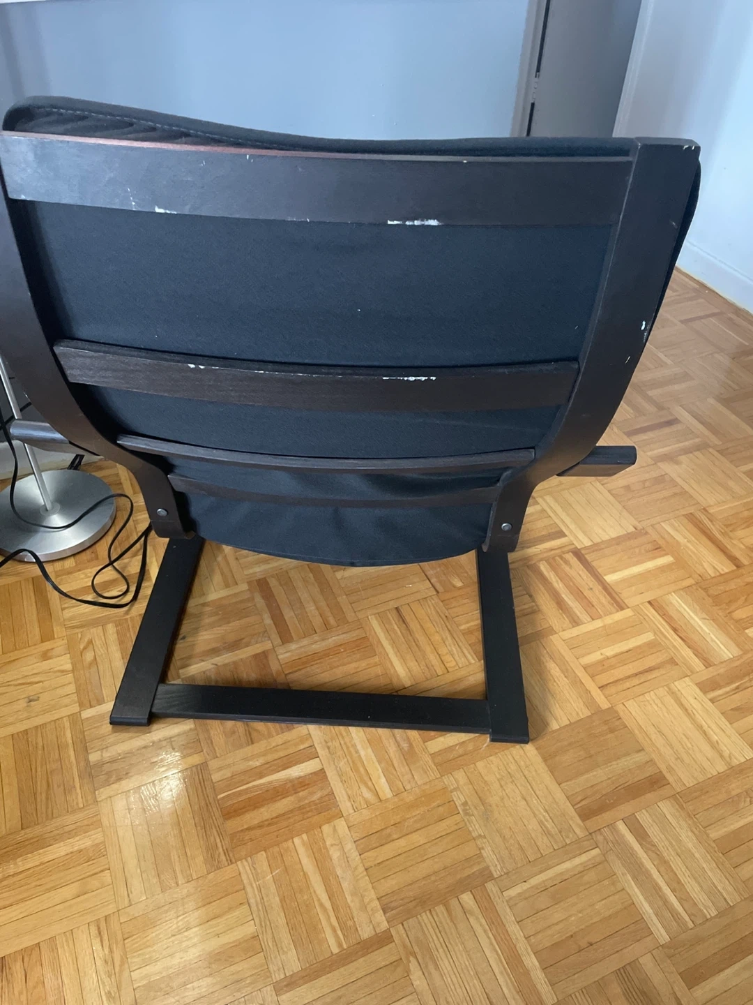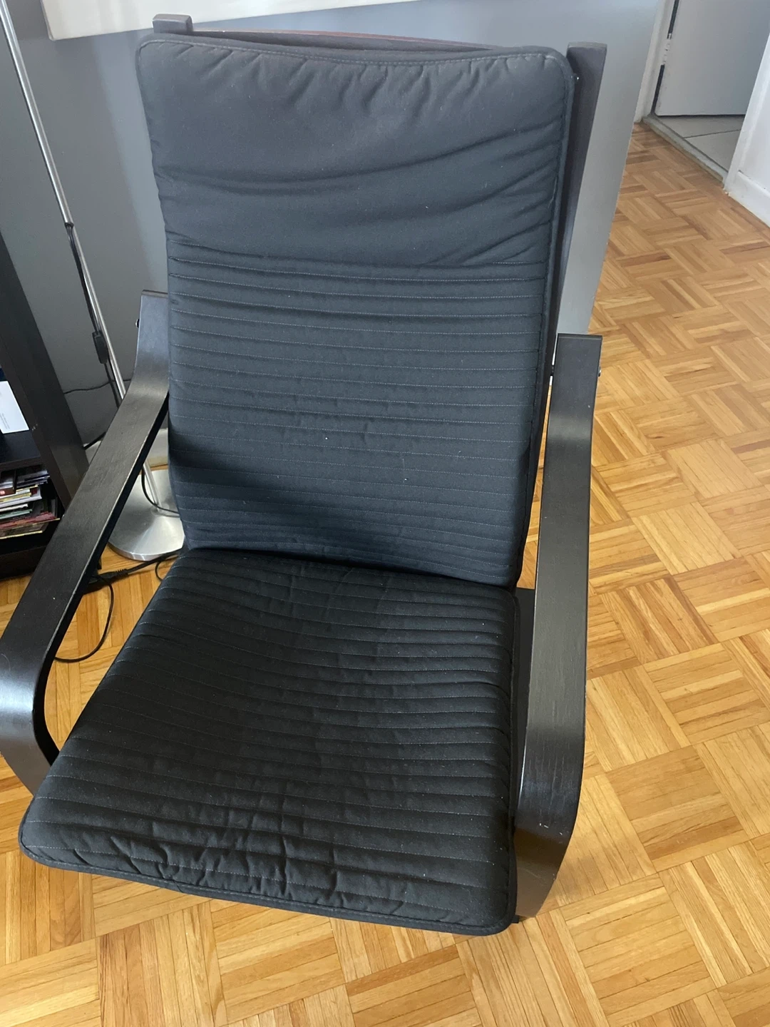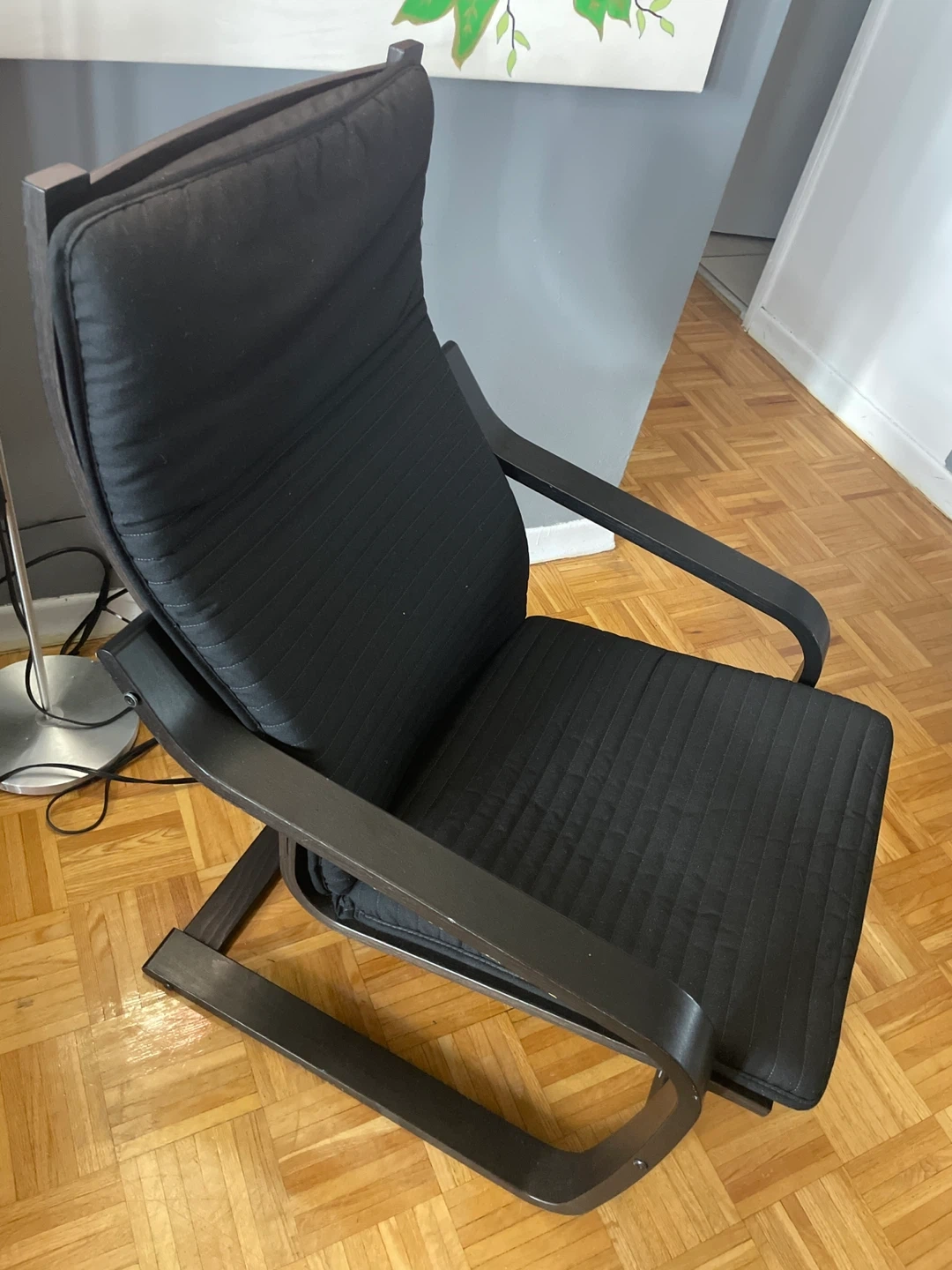Selling a used Ikea Poang chair in black.