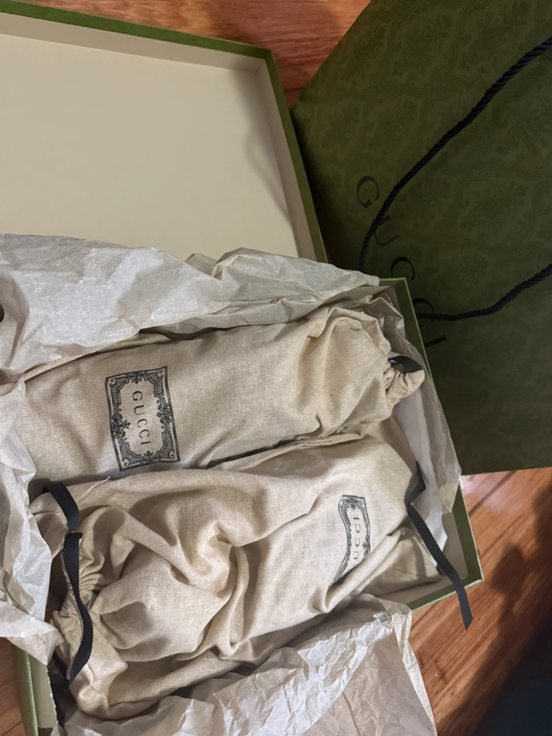 Selling a pair of Gucci men's sneakers. They are a size 10. The shoes come with the original box and dust bags!
