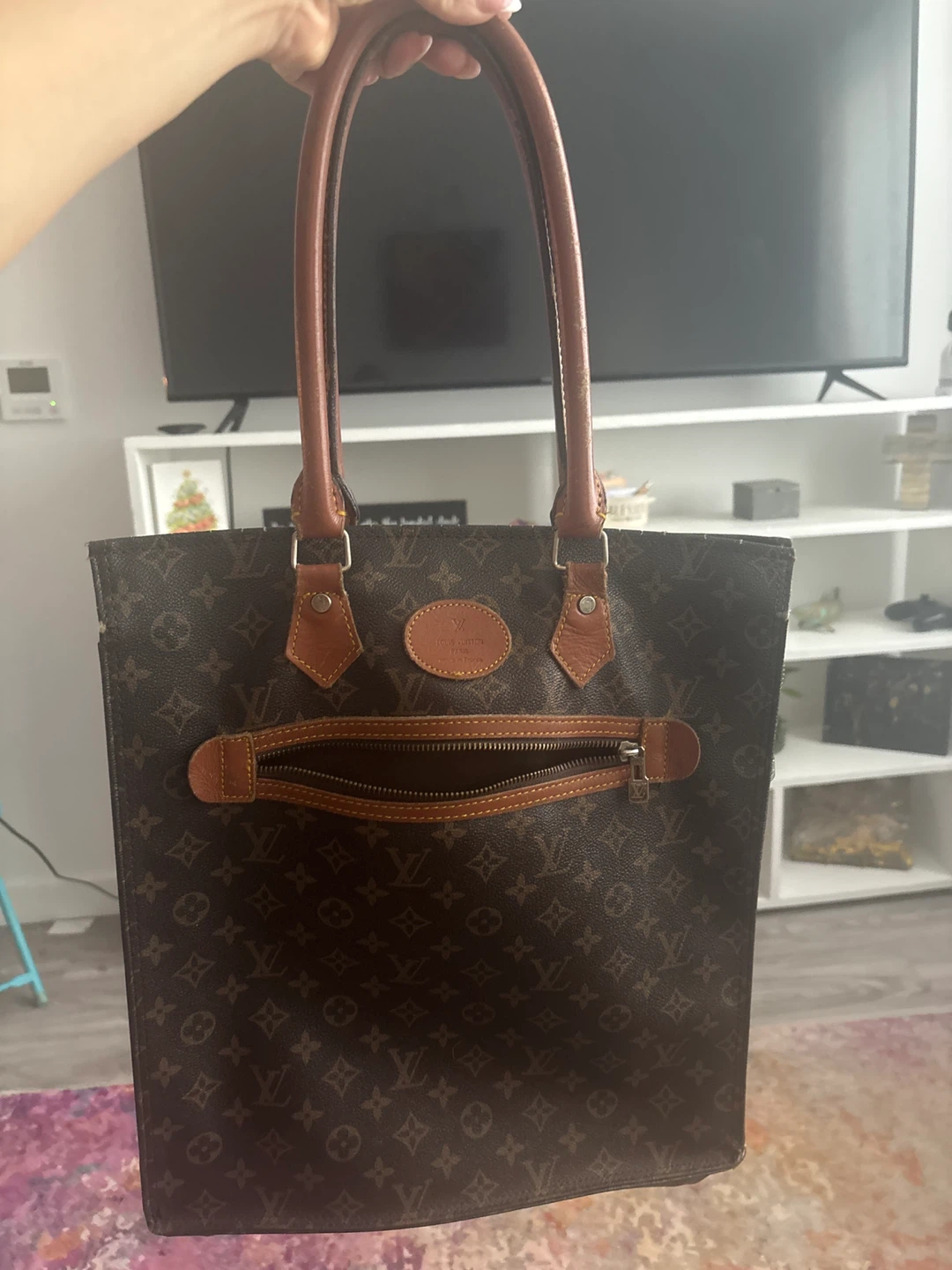 Selling a Vintage Louis Vuitton tote bag with the classic monogram pattern! It's a stylish and functional bag, perfect for everyday use. The bag features leather handles and trim, as well as a zippered front pocket. Normal wear and tear, but it’s restorable. The inside interior, connected to the pocket, needs to be restored, and I’m willing to negotiate a reasonable pricing. Must be realistic.