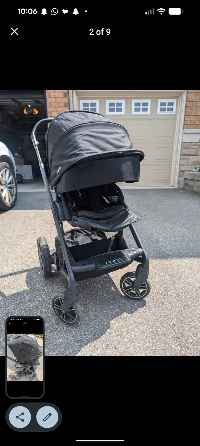 Selling a Nuna Mixx stroller in black. It's in good condition and ready for your little one's adventures! Super easy to fold and store unlike the other strollers. Comes with foot muff and extra frame. Fully reclining and can be used from baby to 50lbs.