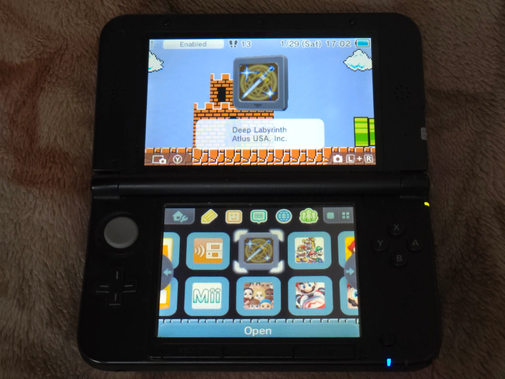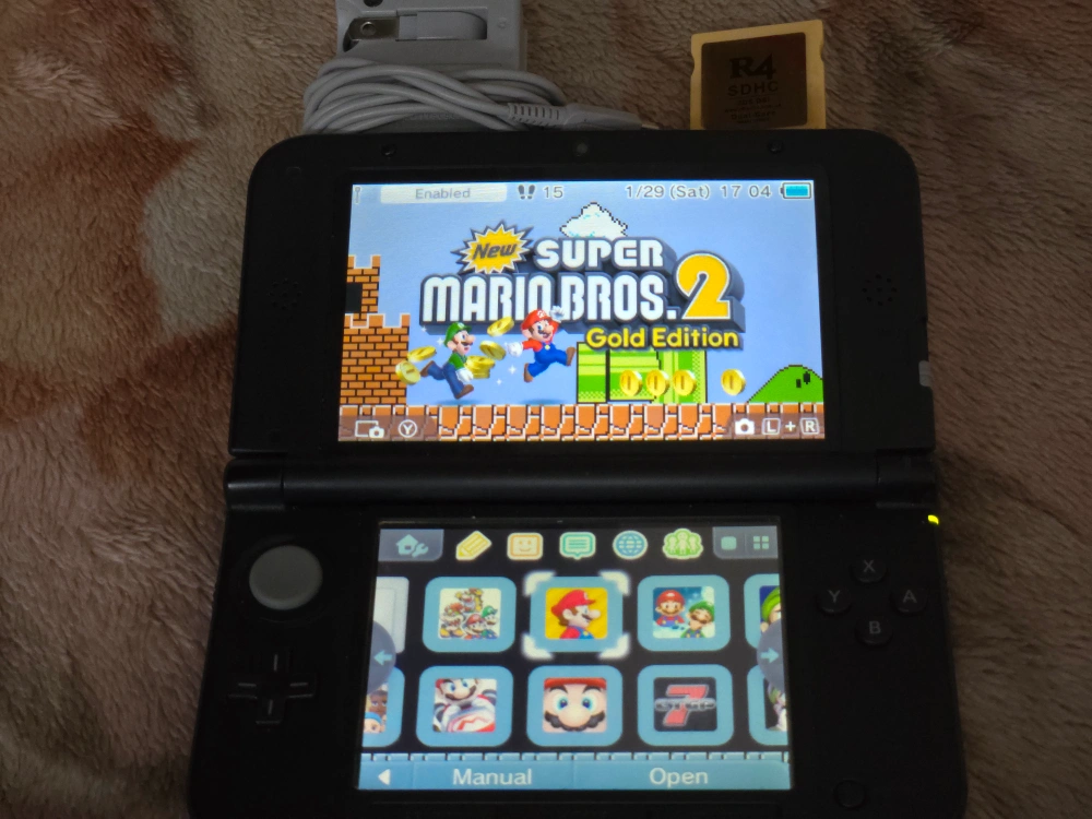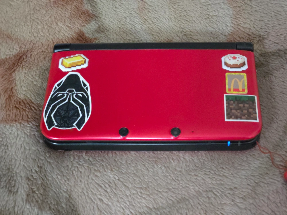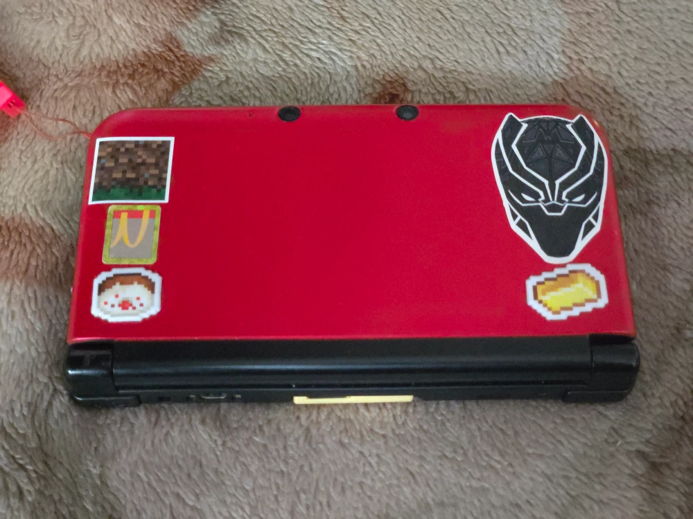 Selling a Nintendo 3DS LL in red and black. It comes with the AC adapter. There are some stickers on the back. It's also Homebrewed and comes with games.