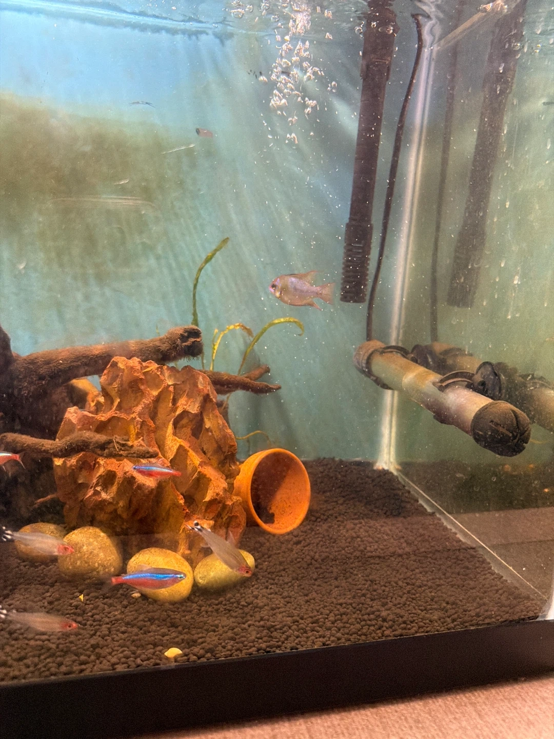 Its a moving out sale till jan 27 . 20 g aquarium with six rummy nose six beautiful cardinal tetras and a male german blue ram with air-pump heater, filter, fish net food and all light and a plant substrate is soil fluval . There is cave , stone and drift wood too.It’s perfect for whole setup and ready for new home.