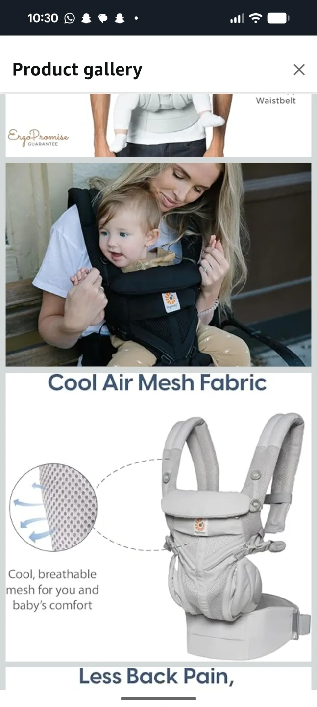 Ergobaby 360° carrier in black! This carrier is great for keeping your little one close while you're on the go. Can wear front or back. Its very soft unlike other carriers, and features a cotton fabric for breathability and is designed for less back pain. The baby loves it and fell right asleep. Has a little pouch for storing stuff and if easily adjusted. Perfect for inward carry for newborns and outward carry for 5+ month olds. You deserve a little hands free time.