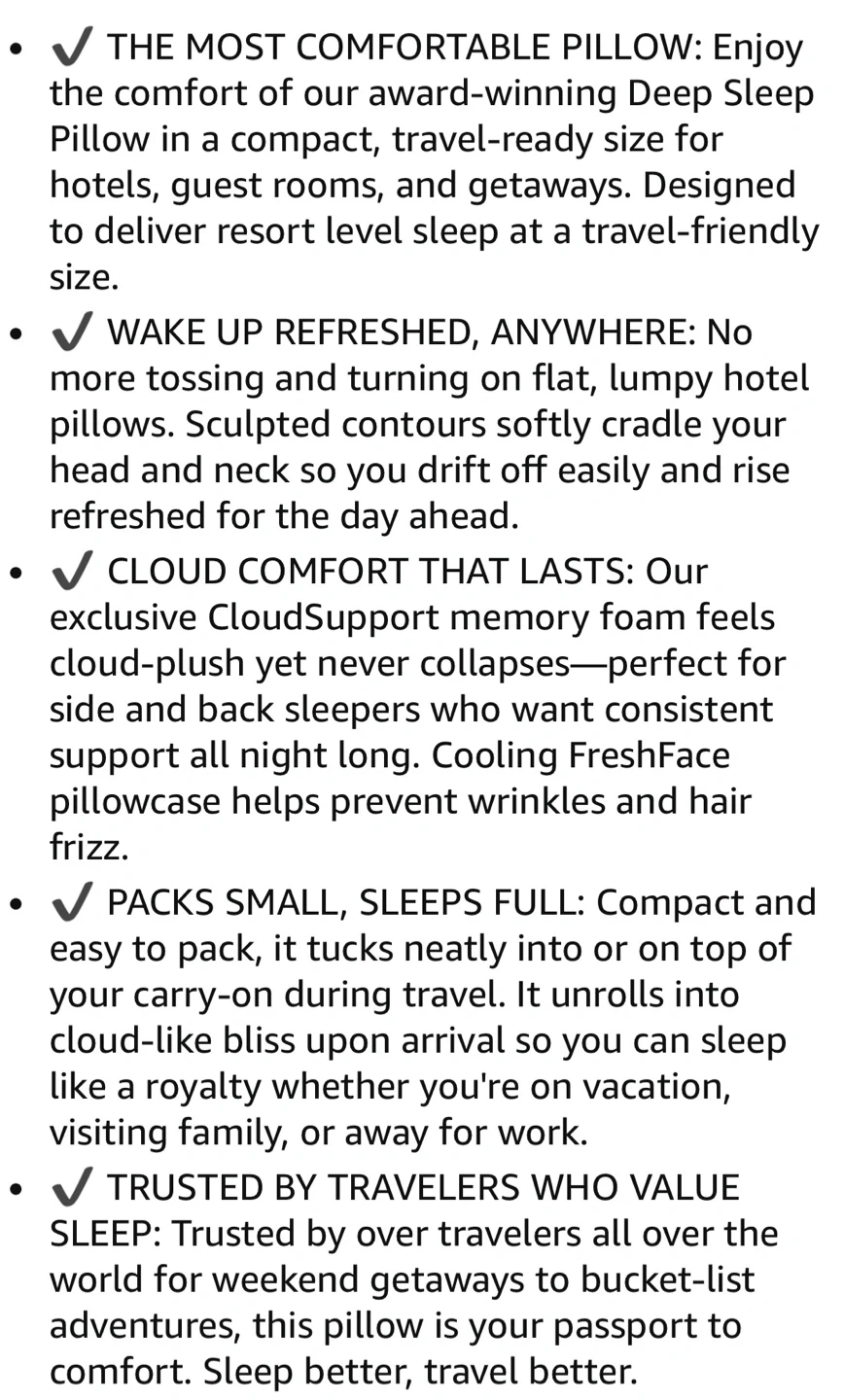 • Compact, travel-ready deep sleep pillow