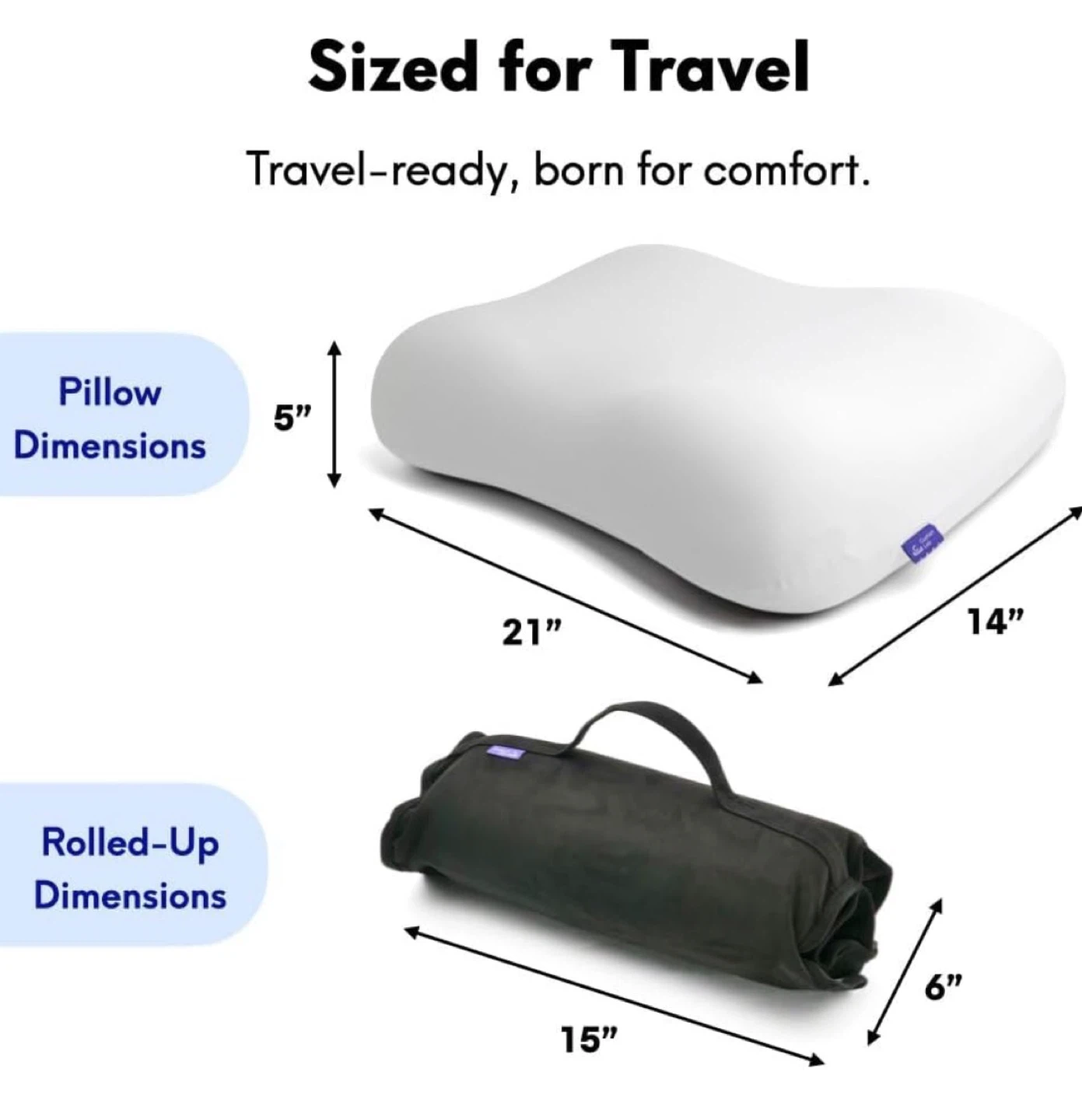 • Pillow: 21” x 14” x 5”