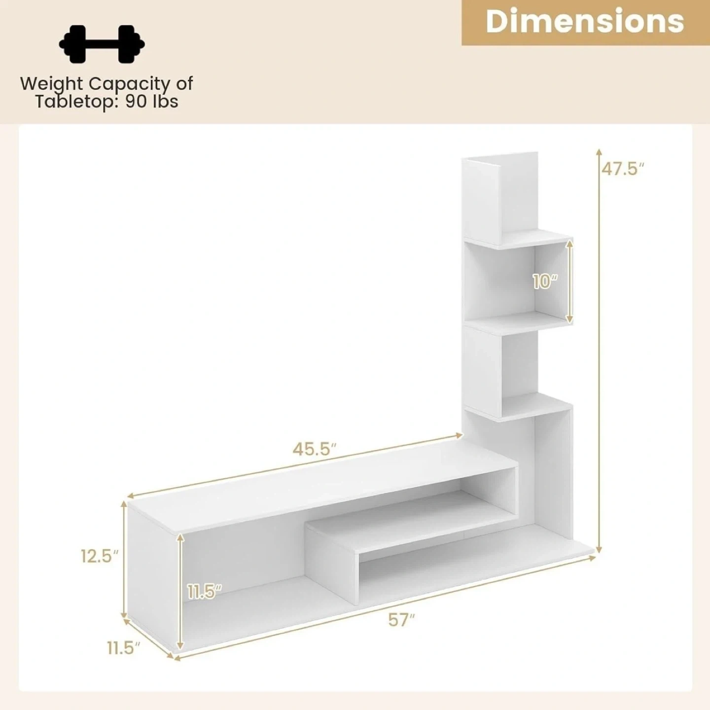 This unique L-shaped TV stand adds a fresh and unconventional look to your home! It fits flat screen TVs up to 50".