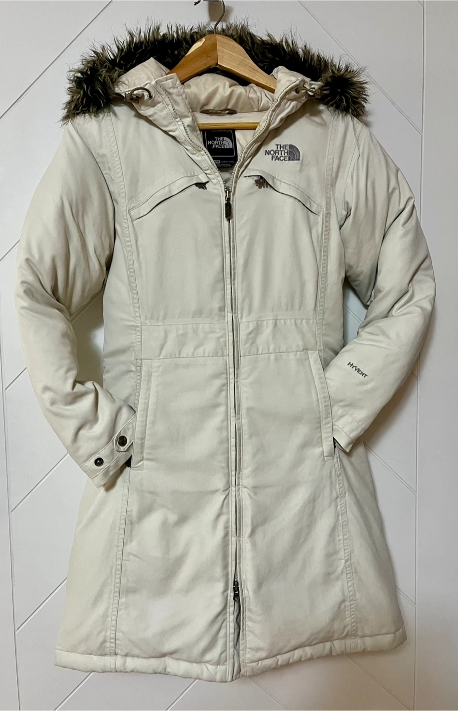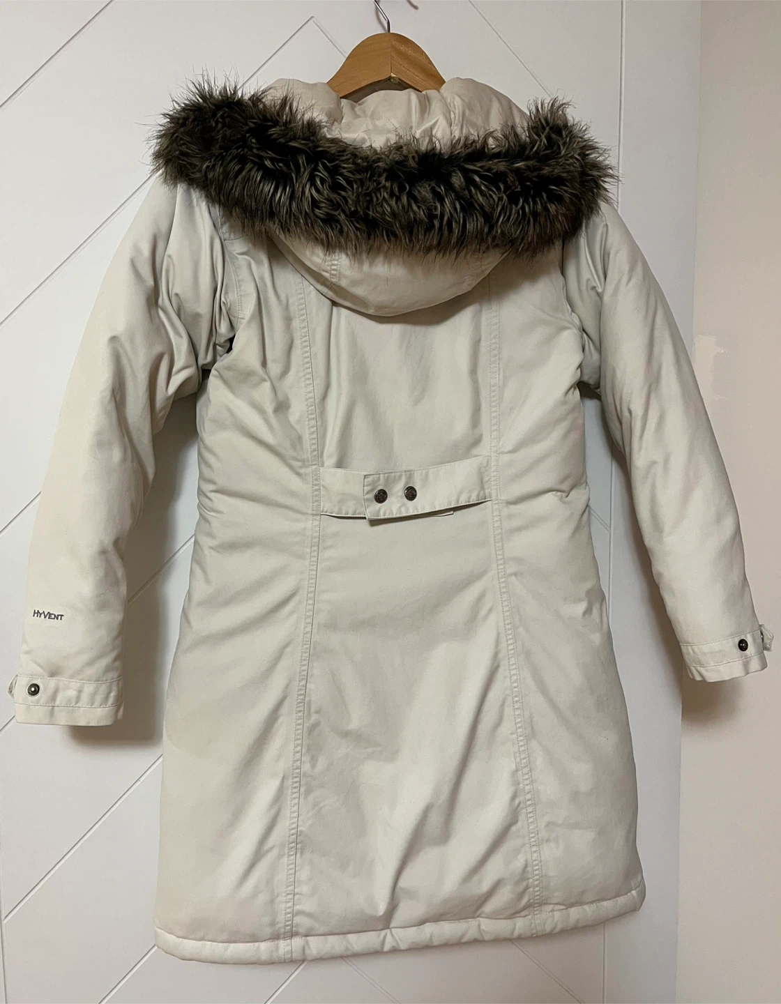 It features a faux fur trim on the hood and HyVent technology
