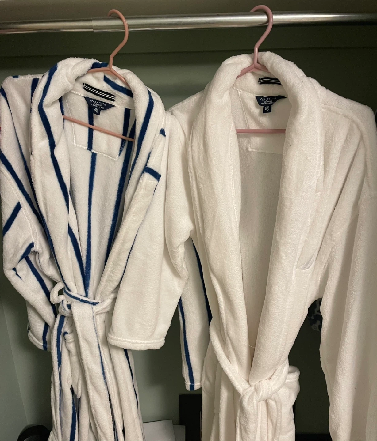 Two brand new never worn plush bathrobes from the brand Nautica. One size fits all.