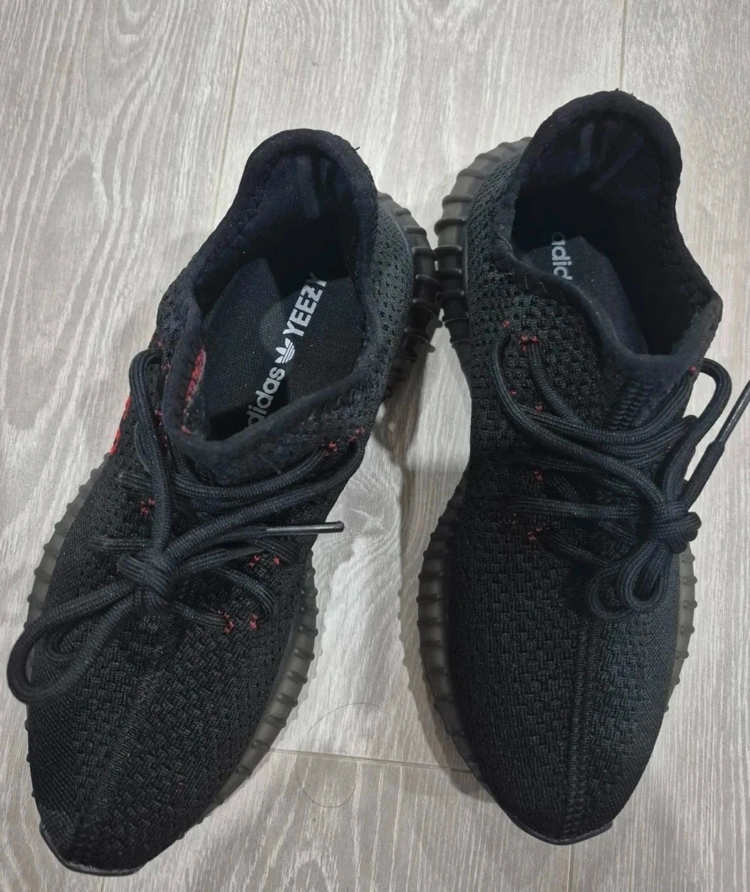 Selling a pair of Adidas Yeezy Boost 350 V2 in black. These stylish and comfortable shoes are a great addition to any wardrobe. The unique design and Boost technology make them perfect for everyday wear. They are in good condition and ready for a new owner