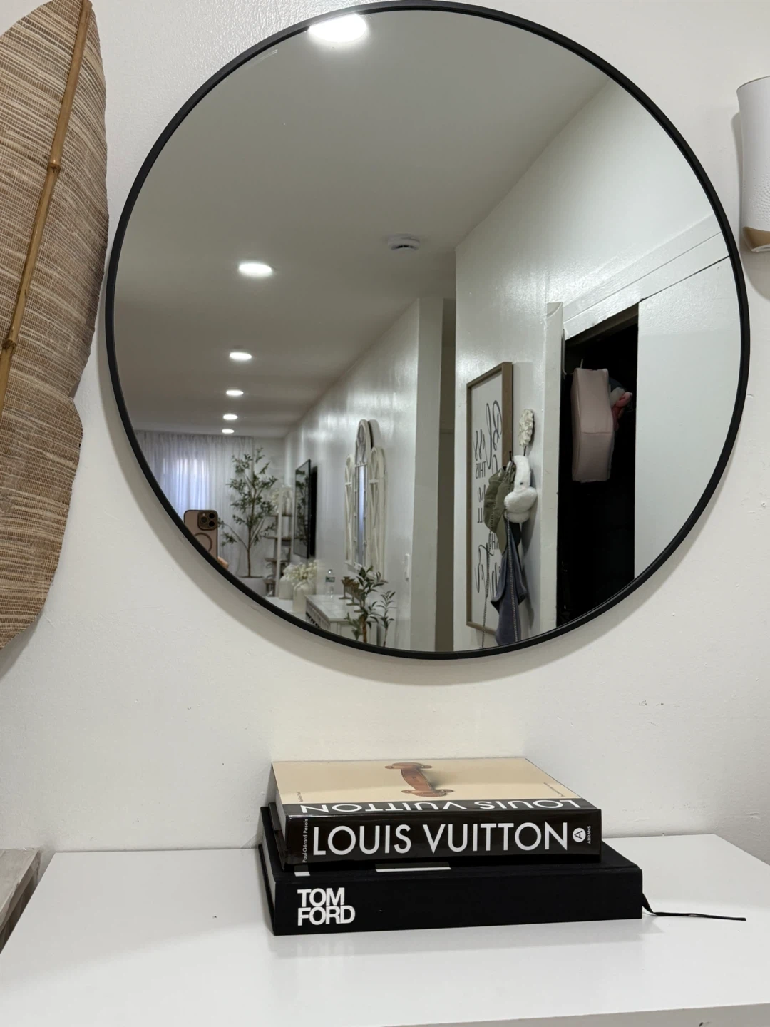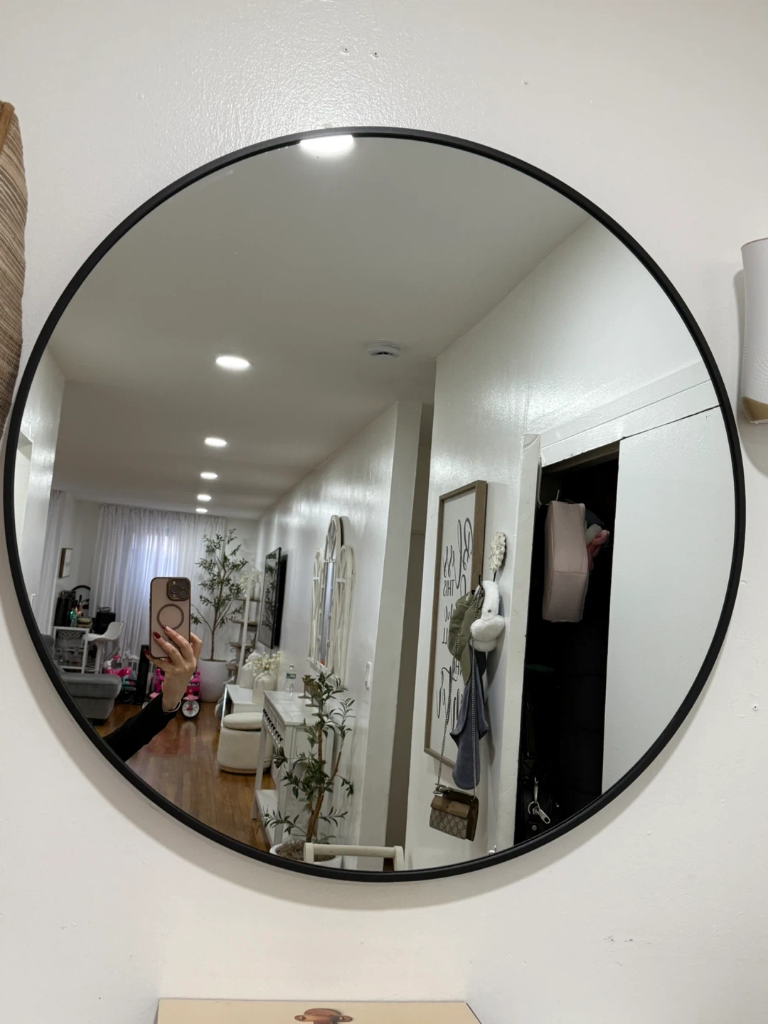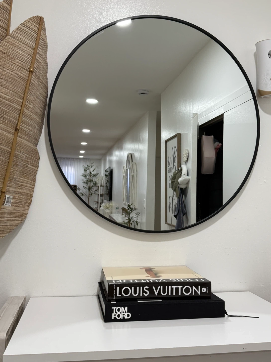 Selling a Beauty4U 32-inch wall circle mirror with a sleek black frame! It's a large round mirror perfect for adding a touch of modern elegance to your living room, bedroom, vanity, or bathroom. It’s in great condition and ready to hang!