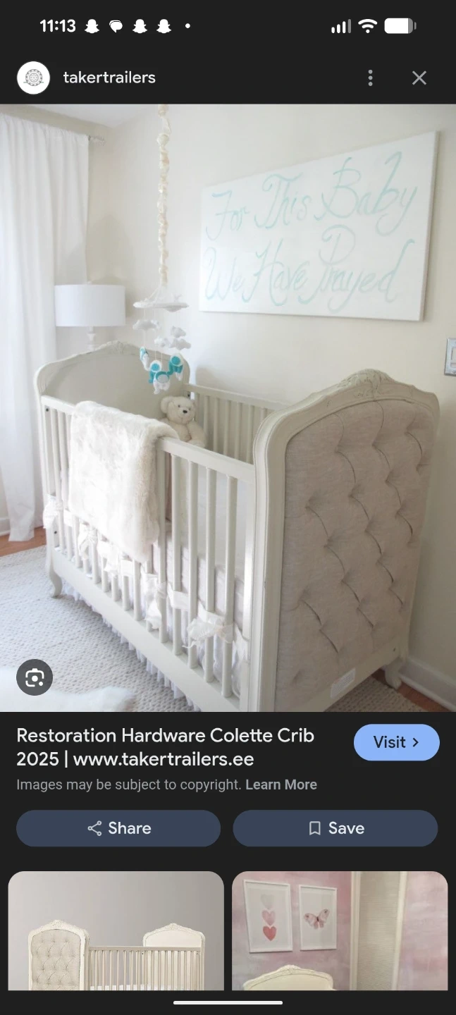 Gorgeous upholstered tufted baby crib. A Restoration Hardware Colette Tufted Crib lookalike in white. It's convertible and in excellent condition and would be a lovely addition to any nursery! So chic.