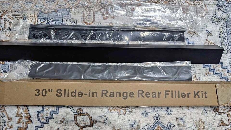 Slide-in range rear filler kit for countertops, Owens , burners