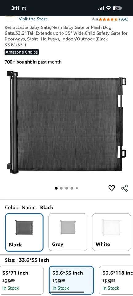 Retractable Baby/Dog Gate, 33.6" Tall, Extends to 59"