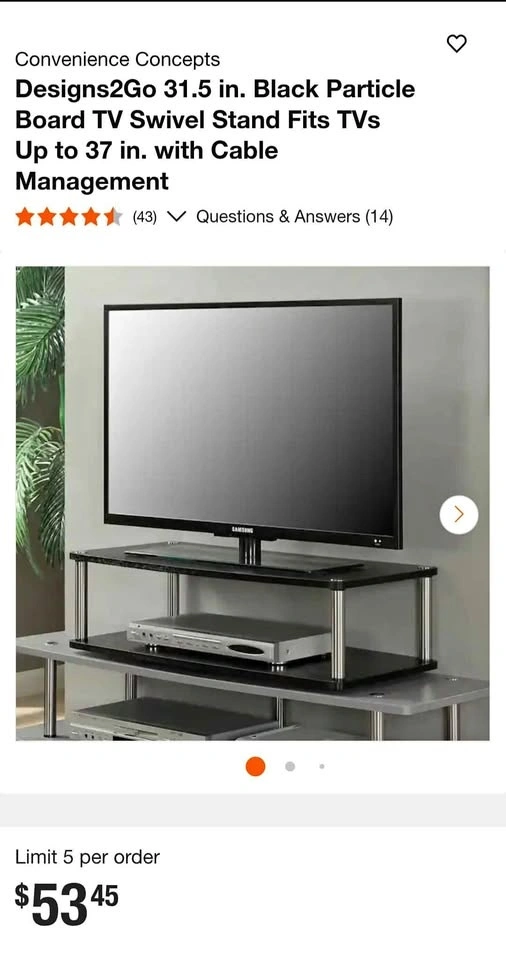 31.5 in Board Swivel Stand Fits TV/desktops Up to 37"