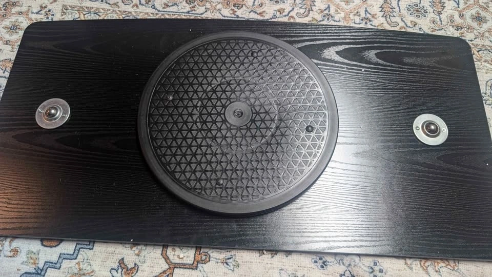 Black woodgrain Convenience Concepts Designs2Go XL Single Tier Swivel Riser for a TV or monitor.