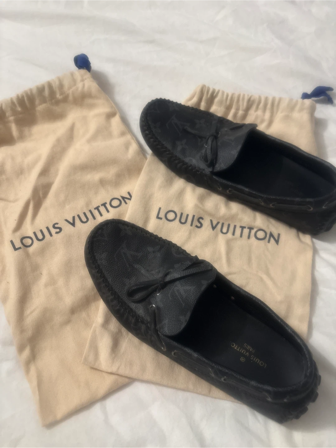 Selling a pair of Louis Vuitton loafers for men! They are in great condition and come with the original dust bags. Perfect for adding a touch of luxury to your everyday style