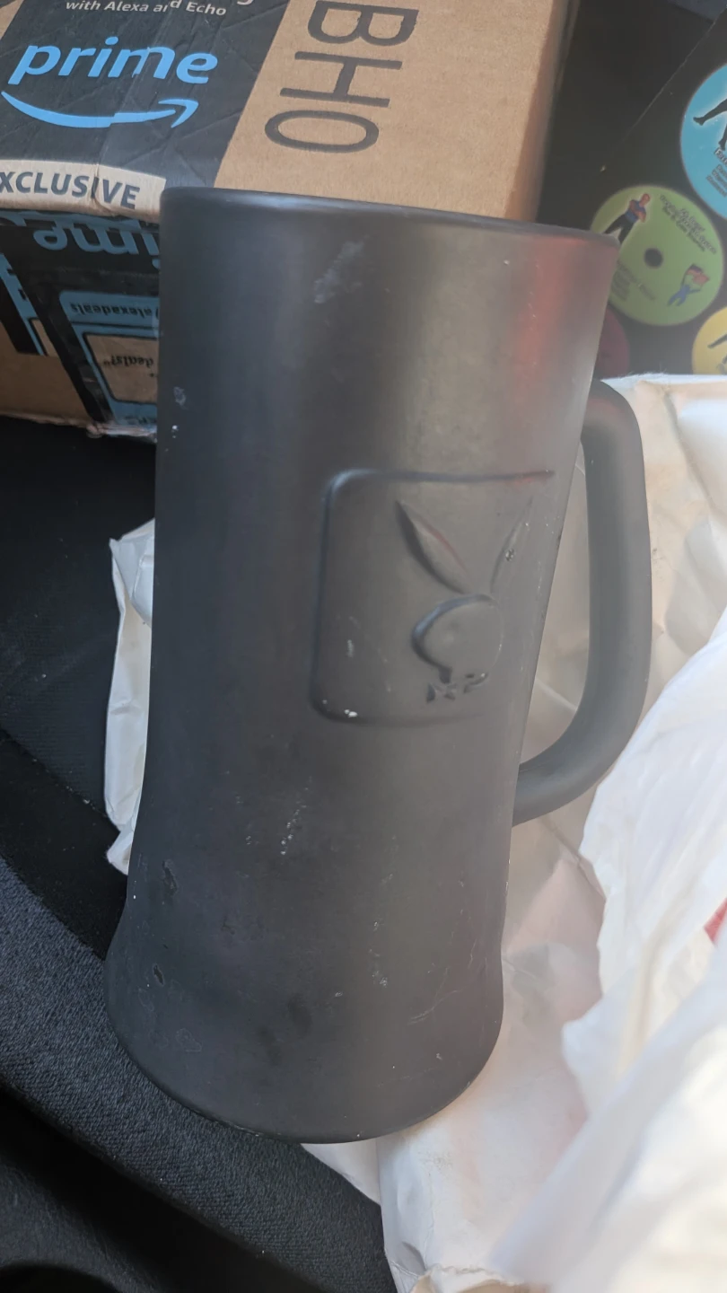 Giving away a black Playboy beer stein mug. The mug has the classic Playboy bunny logo on the front. It's in used condition with some signs of wear, but still a cool piece to add to your collection!